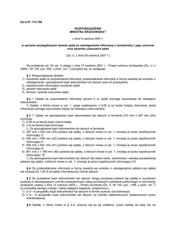 Dz.U.07.114.788 ROZPORZĄDZENIE MINISTRA