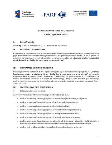 ZAPYTANIE OFERTOWE nr 1/12/2015 z dnia 15