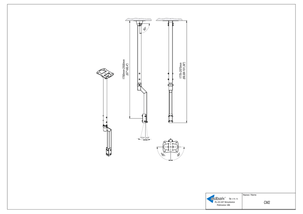 90 ° 1775÷2575mm (69,88÷101,38") 1700mm÷2500mm (67"÷98,4") +12,5° -6,5° 0° +9 -9 0° Nazwa / Name Sp. z o. o. PL-23-107 Strzyżewice Piotrowice 186 CM2