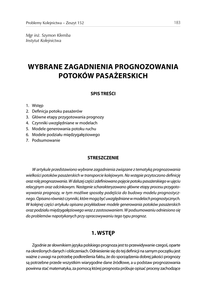 pełny tekst - Problemy Kolejnictwa