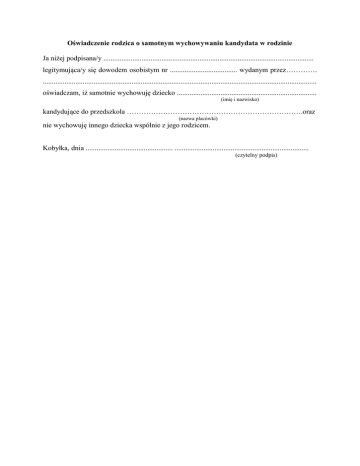 Oświadczenie rodzica o samotnym wychowywaniu kandydata w