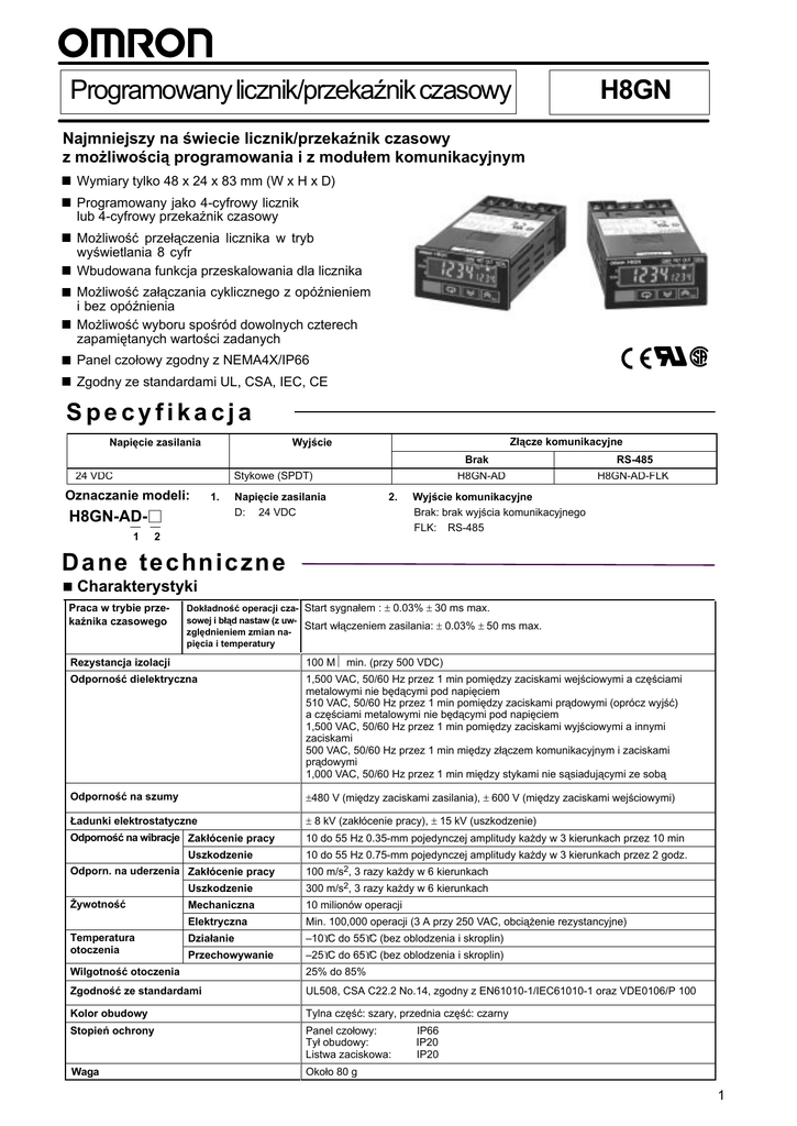 UL508, CSA C22.2 No.14, zgodny z EN61010-1/IEC61010-1 oraz VDE0106/P 100