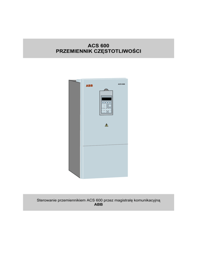 ACS 600 PRZEMIENNIK CZĘSTOTLIWOŚCI ACS 600 Sterowanie przemiennikiem ACS 600 przez magistralę komunikacyjną ABB DOKUMENTACJA TECHNICZNO – RUCHOWA SPIS TREŚCI 1. WPROWADZENIE ...................................................................................................................................... 2 2. URUCHOMIENIE KOMUNIKACJI Z ADAPTEREM MAGISTRALI KOMUNIKACYJNEJ NMBA−01 ..................................................................................................................................................... 2 3. REJESTR ODCZYTU I ZAPISU................................................................................................................ 3 4. STEROWANIE NAPĘDEM ZA POMOCĄ MAGISTRALI KOMUNIKACYJNEJ MODBUS.......... 4 5. KODY BŁĘDÓW........................................................................................................................................ 11 6. PRZYKŁADOWE PROTOKOŁY KOMUNIKACYJNE W ACS 600 ................................................. 13 ACS 600 – RS 485 1 @KEMOR DOKUMENTACJA TECHNICZNO – RUCHOWA 1. Wprowadzenie ACS 600 może być przyłączony do zewnętrznego systemu sterowania – zwykle jest to magistrala komunikacyjna – poprzez moduł adaptera (przyłączony do kanału światłowodowego CH0 na płycie NDCO) oraz do interfejsu szeregowego RS-485 pracującego wg protokołu MODBUS (na płycie NIOC01) (rys. 1.1). Magistrala komunikacyjna RS-485 ACS 600 Sterowanie przez magistralę komunikacyjną CH0 (DDCS) Adapter NMBA-01 dla szyny komunikacyjnej Port szeregowy komputera Adapter Do konwersji RS232/RS485 Rys. 1. Sterowanie przez magistralę komunikacyjną za pomocą komputera. Kanał światłowodowy CH0 pracujący na bazie protokołu DDCS znajdujący się na dodatkowej płycie komunikacji, NDCO jest używany do przyłącza ACS 600 do modułu adaptera magistrali komunikacyjnej np. NMBA-01. 2. Uruchomienie komunikacji z adapterem magistrali komunikacyjnej NMBA−01 Do komunikacji protokołem MODBUS używa się adaptera NMBA-01, oraz płyty NAMC-11 z opcją komunikacyjną NDCO-03. Przed skonfigurowaniem ACS 600 do sterowania przez magistralę komunikacyjną moduł adaptera musi zostać zainstalowany mechanicznie i elektrycznie zgodnie z zaleceniami podanymi w instrukcji modułu adaptera. NMBA-01 jest całkowicie skonfigurowany przez panel przemiennika. Nie ma żadnych przełączników DIP, ani żadnych łączników, które są ustawione na opcję modułu NMBA-01. Moduł jest podłączony do przemiennika i otrzymuje od niego napięcie zasilania. Komunikacja pomiędzy ACS 600 a adapterem magistrali komunikacyjnej jest uaktywniana przez odpowiednie ustawienie parametru 98.02 COMM.MODULE LINK. Po zainstalowaniu komunikacji parametry konfiguracyjne modułu stają się dostępne w napędzie w Grupie Parametrów 51. Ustawienia parametrów w grupie 98 dla NMBA-01 przedstawia tabela 1 Tabela 1. Ustawienie parametrów w grupie 98 dla modułu NMBA-01 Parametr Nastawy dla NMBA-01 98.01 ENCODER MODULE NO 98.02 COMM.MODULE LINK FIELDBUS 98.03 DI/O EXT MODULE1 NO 98.04 DI/O EXT MODULE2 NO 98.05 DI/O EXT MODULE3 NO 98.06 DI/O EXT MODULE4 NO 98.07 COMM PROFILE ABB DRIVES Po ustawieniu parametru 98.02 uaktywnia się grupa parametrów 51. Grupa ta identyfikowana jest przez moduł komunikacyjny w ACS 600. Parametry ustawienia mogą być zmodyfikowane przez użycie panelu przemiennika. Parametry te opisane są poniżej. • 51.1 Typ modułu. Pokazuje typ modułu komunikacji oraz wersję. Dla komunikacji MODBUS jest to NMBA-01Vn.n. • 51.2 Tryb Modbus. Pokazuje logiczny protokół na hardwarze modułu komunikacji. Dla modułu Modbus są dwa wybory. ACS 600 – RS 485 2 @KEMOR DOKUMENTACJA TECHNICZNO – RUCHOWA − RTU wdg: flt Określa tryb binarny lub tryb Terminalu Jednostki Zdalnego Sterowania (Remote Terminal Unit – RTU). Przy błędzie alarmu moduł wykryje ten błąd. − RTU wdg: rst Określa tryb binarny lub tryb Terminalu Jednostki Zdalnego Sterowania (Remote Terminal Unit – RTU). Przy błędzie alarmu moduł sam się wyzeruje (reset). • 51.3 Numer stacji. Ustawia numer węzła sieci komputerowej dla modułu w sieci MODBUS (1–247). • 51.4 Prędkość transmisji. Określa prędkość komunikacji szeregowej w bodach [bd] (1200/2400/4800/9600/19200) • 51.5 Parzystość. Definiuje parzystość, która ma być użyta z komunikacją MODBUS. Ten parametr definiuje także nr bitów stopu, który jest w użyciu. Przy braku parzystości liczba bitów stopu musi wynosić dwa, a jeden przy bitach parzystych. − NONE – Brak kontroli parzystości − EVEN – Kontrola parzystości − ODD – Kontrola nieparzystości • 51.6 Rejestr poprawnych komunikatów. Licznik diagnostyki zwiększa się zawsze o jeden wraz z poprawną wiadomością Modbus, która została odebrana przez moduł NMBA-01. Licznik osiągnie wartość 0 po osiągnięciu wartości 32767. Podczas normalnej operacji rejestr ciągle wzrasta. • 51.7 Rejestr błędnych komunikatów. Ten licznik diagnostyki zwiększy się za każdym razem o jeden, gdy NMBA-01 znajdzie jakiś błąd komunikacji. Licznik osiągnie wartość 0 po osiągnięciu wartości 32767. Podczas normalnej operacji rejestr nie wzrasta. Ustawienia parametrów grupy 51 przedstawia tabela 2 Tabela 2. Ustawienie parametrów w grupie 51 dla modułu NMBA-0 Parametr Wartość domyślna 51.1 Typ modułu NMBA-01V1.7 51.2 Tryb modbus RTU wdg: rst 51.3 Numer stacji 1 51.4 Wartość w Bodach 9600 51.5 Parzystość NONE 1 S BIT 51.6 Rejestr poprawnych komunikatów 0 51.7 Rejestr Błędnych komunikatów 0 3. Rejestr odczytu i zapisu ACS 600 ma wszystkie parametry przemiennika i dane ustawione do mapowania informacji na obszar rejestru 4xxxx. Obszar rejestru może być odczytany z urządzenia zewnętrznego i zewnętrzne urządzenie może modyfikować wartości rejestru przez zapis tych rejestrów. Nie ma ustawionych parametrów dla mapowania danych na rejestr 4xxxx. Mapowanie jest wcześniej zdefiniowan
