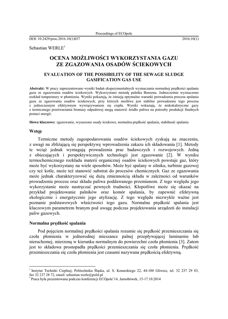 ocena możliwości wykorzystania gazu ze zgazowania osadów
