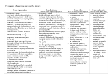 Wymagania edukacyjne matematyka klasa 6