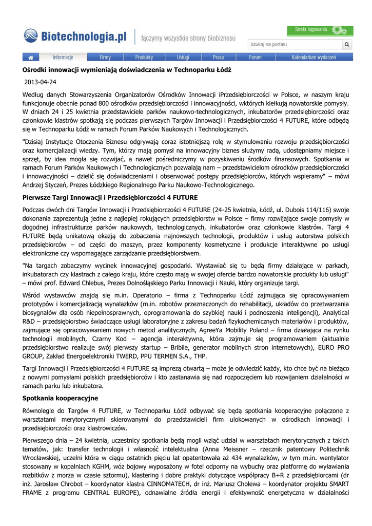 2013-04-24 Biotechnologia.pl - Targi 4Future Lodz