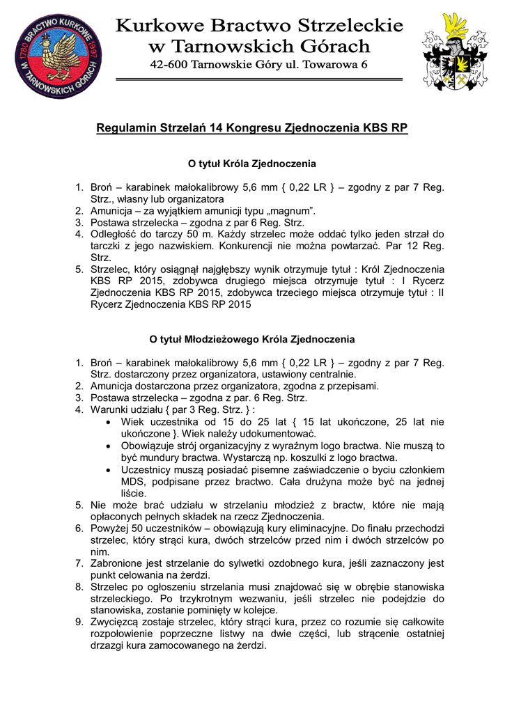 Regulamin Strzelań 14 Kongresu Zjednoczenia KBS RP