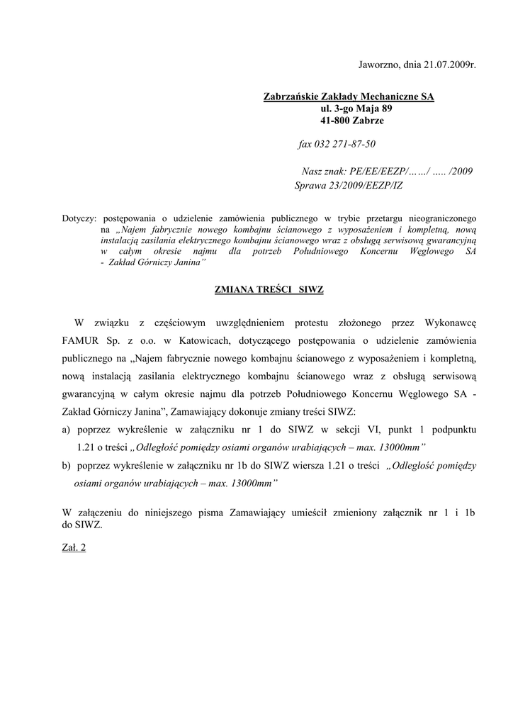 Zmiana SIWZ (nr 2) - 23-2009-IZ