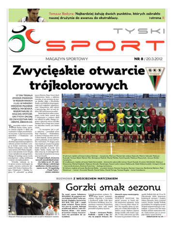 T woje www.gkstychy.info tychy Tomasz Bzdyra: Najbardziej żałuję dwóch punktów, których zabrakło www.gkstychy.com.pl nasze Tychy naszej drużynie do awansu do ekstraklasy. >strona II MAGAZYN SPORTOWY NR 8 / 20.3.2012 117 dni trwała zimowa przerwa w rozgrywkach II ligi. W miniony weekend piłkarze wrócili na boiska, rozgrywając 21. kolejkę spotkań. GKS Tychy zaczął od zwycięstwa nad Jarotą Jarocin 2:0. To zwycięskie wejście w sezon było bardzo ważne, zarówno sytuacji zespołu w tabeli, jak i nastrojów w ekipie przed kolejnymi meczami. A pierwszy poważny sprawdzian – z Chojnicami – już niebawem. W ogóle wiosna w II lidze (zachodniej) zapowiada się wyjątkowo ciekawie, przede wszystkim z uwagi na bardzo wyrównaną stawka drużyn walczących o awans. Zdaniem trenera GKS Piotra Mandrysza (o czym piszemy na str. III) gra toczyć się będzie do samego końca. Dlatego do każdego meczu trzeba przystępować z pełną mobilizacją i walczyć o komplet punktów. Wszystko wskazuje na to, że sprawa awansu rozstrzygnie się między czterema czołowymi ekipami: GKS Tychy, Chrobrym Głogów, Chojnicami i Miedzią Legnica. W „odwodzie” są jednak jeszcze Bytovia, Elana Toruń, Ruch Zdzieszowice, Jarota, a niektórzy twierdzą, że nie powinno się jeszcze skreślać ekipy z Kluczborka. Każdy z tych klubów jest przygotowany pod względem organizacyjnym i finansowym, żeby walczyć o pierwszą ligę, choć na swój stadion GKS musi jeszcze poczekać. Jarota Jarocin to zatem wymagający rywal, który swoich akcji o zamieszaniu w czołówce tabeli nie odłożył na półkę. Dlatego wygrana w pierwszy meczu (od kilku miesięcy był to drugi mecz tyszan na naturalnej trawie) jest bardzo cenna. – To zwycięstwo jest w pełni zasłużone – powiedział trener Piotr Mandrysz. – Wiedzieliśmy, że Jarota to drużyna, która nie traci dużo bramek. Zresztą pierwsza połowa pokazała, że mecz był bardzo wyrównany. W drugiej części nasz zespół, po raz pierwszy grając w dziesiątkę, grał mądrze. To spotkanie pokazało, że każdy mecz będzie bardzo trudny, tym bardziej cieszę się, że zainaugurowaliśmy rundę zwycięstwem nie tracąc przy tym bramki. O rozgrywkach, drużynie, nowych zawodnikach piszemy także na str. III, natomiast relację z sobotniego spotkania z Jarotą zamieszczamy na str. 14 tygodnika „Twoje Tychy”. łukasz sobala Zwycięskie otwarcie trójkolorowych W górnym rzędzie od lewej: Łukasz Dziengo – masażysta, Mariusz Masternak, Łukasz Kopczyk, Marcin Sobczak, Mateusz Kupczak, Tomasz Balul, Marcin Folc, Remigiusz Malicki, Maciej Mańka, Kamil Łączek, Mateusz Mączyński, Janusz Wolski – masażysta. W środkowym rzędzie od lewej: Rafał Oprzondek – kierownik sekcji piłki nożnej, Paweł Pęczak, Krystian Odrobiński, Mateusz Wawoczny, Michał Kojdecki, Mateusz Struski, Marek Igaz, Paweł Lesik, Łukasz Małkowski, Rafał Waksmundzki, Grzegorz Kiecok – kierownik drużyny, Andrzej Ćwiertnia – obsługa techniczna. W dolnym rzędzie od lewej: Bartłomiej Bobla – asystent trenera, Damian Szczęsny, Damian Czupryna, Bartłomiej Babiarz, Piotr Mandrysz – I trener, Krzysztof Bizacki, Daniel Sobas, Daniel Feruga, Tomasz Rogala – trener bramkarzy. Leszek Sobieraj Wojciech Matczak poprowadzi tyski zespół w kolejnym sezonie. michał giel Rozmowa z Wojciechem Matczakiem Gorzki smak sezonu Za nami sezon hokejowy 2011/2012. W ostatnim meczu hokeiści GKS Tychy pokonali Zagłębie Sosnowiec 2:0 (0:0, 0:0, 2:0) i zajęli piąte miejsce. Rzecz jasna nie jest to wynik, którego oczekiwali kibice i cała hokejowa ekipa - ten sezon przyniósł więcej rozczarowań niż powodów do satysfakcji. W poprzednim wydaniu „Tyskiego Sportu” podsumowaliśmy rozgrywki w wywiadzie z dyrektorem spółki Tyski Sport SA Karolem Pawlikiem, teraz rozmawiamy z trenerem Wojciechem Matczakiem, który tyski zespół prowadził od połowy stycznia. – Sanok – mistrzem Polski, Podhale – spada z ligi, Tychy na piątym miejscu. Za- skoczyły pana rozstrzygnięcia sezonu? Wojciech Matczak: Tak, jednak uważam, że Sanok zdobył mistrzostwo zasłużenie. Tychy mają z Cracovią dobre relacje, kibice obu zespołów darzą się sympatią, ale w finale kibicowałem Sanokowi, życząc Markowi Ziętarze złotego medalu. Jeśli chodzi o spadek, to tutaj zaskoczenia nie było, bo szanse na pozostanie w lidze czy spadek Podhala były jak 50 na 50. Zdecydowała chyba dyspozycja konkretnych meczach i postawa Milana Baranyka, który podniósł wartość Torunia. Spadek Podhala jest dotkliwy, bo nastąpił po ponad 50 latach nieprzerwanej gry w ekstraklasie. A jeszcze dwa lata temu Podhale zdobyło mistrzostwo Polski. Zaskoczeniem jest na pewno piąte miejsce naszej drużyny… dokończenie na str. II 2o marca 201 2 www.gkstychy.com.pl www.gkstychy.com.pl Pod tyskim koszem: Tomasz Bzdyra Piotr Mandrysz: Z miesiąca na miesiąc Gorzki smak sezonu Jak tenisista został koszykarzem Ośmiu kandydatów, jeden mistrz Zgadza się pan z opinią, że GKS to największy przegrany tego sezonu? Na pewno jest to porażka, biorąc pod uwagę organizację pracy w klubie, nakłady. Wszyscy czujemy, że zawiedliśmy kibiców i jest nam po prostu przykro. Ten rozgrywki mają dla nas gorzki smak, ale taki sezon się zdarza każdej drużynie. Przez sześć lat GKS grał w finale mistrzostw Polski, przez siedem zdobywał medale, więc piąta lokata to wynik, który na pewno nikogo nie zadowala. Z pana trenerskiego doświadczenia – gdzie popełniono błędy? Nie wiem w szczegółach, jak wyglądały przygotowania, ale drużyna rozpoczęła sezon znakomicie. Problemy zaczęły się w listopadzie. Oczywiście była seria kontuzji, ale niektóre kontuzje nie biorą się z niczego. Są takie, które trzeba traktować jako wypadki przy pracy, wynikające z walki, jak np. Łukasza Sokoła. Natomiast inne, typowo mięśniowe, brały się też z tego, że być może praca w późniejszym 