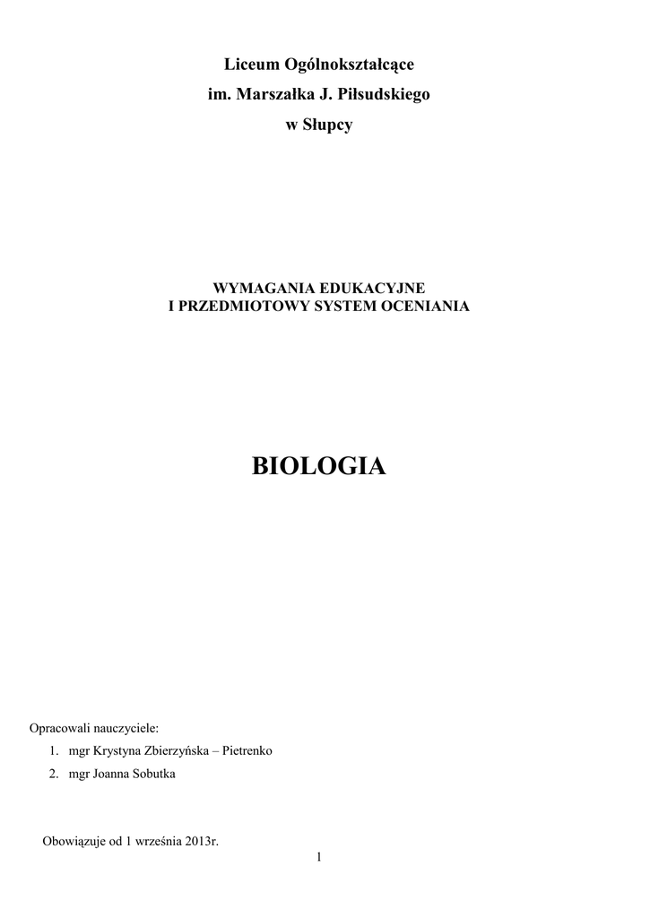 pso-biologia - Liceum Ogólnokształcące im. Marszałka J