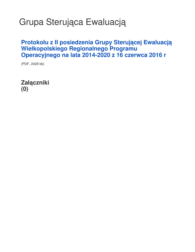 Grupa Sterująca Ewaluacją Protokołu z II posiedzenia Grupy Sterującej Ewaluacją Wielkopolskiego Regionalnego Programu Operacyjnego na lata 2014-2020 z 16 czerwca 2016 r (PDF, 2429 kb) Załączniki (0)