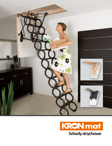 Schody strychowe Schody strychowe OptiStep Firma KRONMAT posiada w swojej ofercie szeroki asortyment schodów strychowych sprzedawanych pod marką OptiStep, które wyposażono w drabinki drewniane segmentowe oraz metalowe nożycowe. Schody OptiStep łączą w sobie zalety funkcjonalności oraz wysokiej trwałości za optymalną cenę. Odpowiednia jakość drewna oraz dbałość o staranne wykonanie sprawiają, że oferowane przez nas produkty doskonale pasują do każdego charakteru wnętrza. Zapewniają możliwość łatwego i bezpiecznego wyjścia na strych lub poddasze, po złożeniu chowają się w stropie, nie zajmując miejsca w pomieszczeniu. Schody segmentowe posiadają stalową poprzeczkę, która przenosi obciążenie na drabinę, co w połączeniu z zastosowanymi rozwiązaniami materiałowymi gwarantuje wysoką wytrzymałość oraz trwałość produktu. Dodatkowo, specjalnie zaprojektowany zawias steruje ruchem klapy, powodując że podczas otwierania schodów drabinka automatycznie odsuwa się od niej i zwiększa tym samym przestrzeń niezbędną do wygodnego i bezpiecznego poruszania się po drabinie. Model Wersja Skrzynka Uszczelka Klapa Drabinka Stopnie Poręcz Szybki montaż Izolacyjność BEST OLE OST schody kompletnie zmontowane drewniana o wysokości 18 cm + metalowe listwy BETTER OLT OLK OLS BASIC OLN schody zmontowane oprócz wsporników, które przed zamontowaniem w stropie wymagają skręcenia bocznych elementów drewniana o wysokości 11 cm drewniana o wysokości 14 cm tak (1 szt.) brak termoizolacyjna termoizolacyjna termoizolacyjna termoizolacyjna termoizolacyjna - płyta płyta typu sandwich płyta typu sandwich płyta typu sandwich płyta typu sandwich płyta typu sandwich nieocieplana o grubości o grubości 3,6 cm o grubości 3,6 cm o grubości 3,6 cm o grubości 2,6 cm o grubości 2,6 cm wiórowa 1 cm obustronnie biała obustronnie biała obustronnie beżowa obustronnie biała obustronnie beżowa do otwarcia klapy do otwarcia klapy służy umieszczony w klapie plastykowy zaczep służy sznurek metalowa z nożycowym drewniana, segmentowa, profil policzka o wysokości 7 cm systemem składania antypoślizgowe, szerokość stopnia drewniane, szerokość stopnia 7 cm 8 cm brak tak brak tak brak tak 1,1 W/m K 1,13 W/m K* 2 Obciążenie 160 kg Strona str. 4 1,54 W/m2K* 2 — 150 kg str. 6 str. 8 * obliczenia wewnętrzne producenta www.kronmat.com 2 str. 9 str. 10 str. 11 U= 1,1 W/m2K wysoka izolacyjność Zalety Oszczędność miejsca niewielka waga Schody strychoweOptistep podczas składania i rozkładania drabinki nie wymagają dużej przestrzeni, a po złożeniu „chowają się” w stropie. Oszczędzamy tym samym miejsce w pomieszczeniu, w którym zostały zamontowane. Łatwy montaż łatwy i szybki montaż System montażu pozwala na łatwe zamontowanie schodów przez dwie osoby oraz dopasowanie długości drabiny do wysokości pomieszczenia. Schody dostarczone są do klienta kompletnie zmontowane i nie wymagają żadnych czynności przedmontażowych. Wygodna obsługa Odpowiednia konstrukcja mechanizmu odciążającego klapę schodów usprawnia ich obsługę. Dostarczany ze schodami drążek umożliwia wygodne otwieranie i zamykanie schodów. wysoki komfort użytkowania GWARANCJI 2 LATA 2 lata gwarancji Dodatkowe wyposażenie W celu zwiększenia komfortu użytkowania oraz przyspieszenia montażu do schodów segmentowych Optistep dostępne są akcesoria dodatkowe. Gwarancja Schody strychowe Optistep objęte są 2 letnią gwarancją. Akcesoria Listwy maskujące OXL Listwy OXL-PVC – montaż w schodach OLE Listwy OXL-PVC – montaż w schodach OLK Listwy OXL służą do estetycznego zamaskowania szczelin pomiędzy skrzynką schodów a otworem w suficie. Plastikowe listwy w kolorze białym OXL-PVC gwarantują superszybki montaż bez użycia gwoździ. Listwy dostępne w rozmiarze 70x140 cm. Dopasowanie do mniejszych rozmiarów schodów poprzez docięcie podłużnych elementów listew. Pasują do schodów OLS, OLK, OLT, OLE. Zestaw termoizolacyjny OXT Zestaw OXT umożliwia poprawę właściwości termoizolacyjnych zamontowanych w stropie schodów nieocieplanych OLN, bez konieczności wymiany całych schodów. W skład zestawu wchodzi: obustronnie biała klapa termoizolacyjna o grubości 2,6 cm, uszczelka obwodowa do zamontowania w skrzynce, drewniane listwy maskujące oraz drążek do otwierania klapy. Dostępne rozmiary* 60x120, 70x120 [cm] Zestaw do otwierania klapy OXR Zestaw OXR to alternatywny sposób otwierania klapy dla schodów nieocieplanych (z płytą wiórową). Zestaw składa się z haczyka wkręcanego w otwór w klapie oraz drewnianego drążka, który umożliwia otwarcie klapy. * Dostępne w II poł. 2014 r. www.kronmat.com www.kronmat.pl 3 OST BEST Klapa – obustronnie biała klapa termoizolacyjna typu sandwich o grubości 3,6 cm. Skrzynka – wykonana z drewna sosnowego; – usztywniona w narożach za pomocą opatentowanych zawiasów; – wyposażona w uszczelkę obwodową. Drabina – metalowa z nożycowym systemem składania, umożliwiającym dopasowanie jej długości do wysokości pomieszczenia; – zakończona rolkami zabezpieczającymi przed rysowaniem podłogi. Stopnie – wyposażone w profil antypoślizgowy. Dostępne rozmiary 51x80, 60x90, 60x120, 70x80, 70x120 [cm] U= 1,1 W/m2K wysoka izolacyjność łatwy i szybki montaż Energooszczędność wysoki komfort użytkowania Obustronnie biała klapa termoizolacyjna o grubości 3,6 cm znacznie ogranicza straty ciepła. Doskonała szczelność Skrzynka została wyposażona w uszczelkę, która gwarantuje zachowanie wysokiej szczelności. GWARANCJI 2 Maksymalne obciążenie Szerokość stopni Długość stopni Grubość płyty Wysokość skrzynki Współczynnik przenikania ciepła Bezpieczeństwo i komfort użytkowania Antypoślizgowy profil stopnia zabezpiecza przed ześlizgnięciem się stopy. Esowaty kształt policzków ułatwia użytkowanie schodów. LATA Szybki montaż 160 kg 8 cm dla 51 