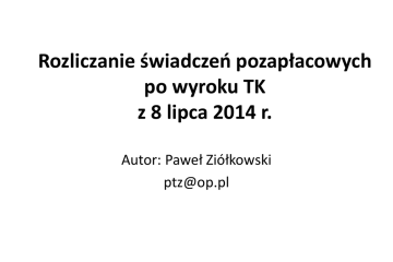 Rozliczanie świadczeń pozapłacowych po wyroku TK z 8 lipca 2014 r. Autor: Paweł Ziółkowski [email protected] Wynagrodzenia Wynagrodzenie za pracę jest to obowiązkowe, wypłacane okresowo świadczenie ze stosunku pracy o charakterze przysparzająco-majątkowym, należne pracownikowi od pracodawcy za wykonywaną pracę odpowiednio do jej rodzaju, ilości i jakości. 2 Rodzaje wynagrodzenia • Wynagrodzenie zasadnicze, • Akord, • Prowizja, • Premie, • Nagrody, • Inne 3 Inne świadczenia związane ze stosunkiem pracy • Dodatki, • Ekwiwalenty, • Odprawy, • Wynagrodzenia za czas nieświadczenia pracy, • Diety, • Inne 4 Przychody ze stosunku pracy Za przychody ze stosunku służbowego, stosunku pracy, pracy nakładczej oraz spółdzielczego stosunku pracy uważa się wszelkiego rodzaju wypłaty pieniężne oraz wartość pieniężną świadczeń w naturze bądź ich ekwiwalenty, bez względu na źródło finansowania tych wypłat i świadczeń, a w szczególności: wynagrodzenia zasadnicze, wynagrodzenia za godziny nadliczbowe, różnego rodzaju dodatki, nagrody, ekwiwalenty za nie wykorzystany urlop i wszelkie inne kwoty niezależnie od tego, czy ich wysokość została z góry ustalona, a ponadto świadczenia pieniężne ponoszone za pracownika, jak również wartość innych nieodpłatnych świadczeń lub świadczeń częściowo odpłatnych. 5 Ogólna definicja przychodu Przychodami są otrzymane lub postawione do dyspozycji podatnika w roku kalendarzowym pieniądze i wartości pieniężne oraz wartość otrzymanych świadczeń w naturze i innych nieodpłatnych świadczeń. 6 Wytyczne z wyroku TK Za przychód pracownika mogą być uznane takie świadczenia, które: 1) zostały spełnione za zgodą pracownika (skorzystał z nich w pełni dobrowolnie) 2) zostały spełnione w jego interesie (a nie w interesie pracodawcy) i przyniosły mu korzyść w postaci powiększenie aktywów lub uniknięcie wydatku, który musiałby ponieść, 3) korzyść ta jest wymierna i przypisana indywidualnemu pracownikowi (nie jest dostępna w sposób ogólny dla wszystkich podmiotów). 7 Kumulacja przychodów Pracownicy mogą uzyskiwać przychody z dwóch źródeł: - stosunek pracy, - inne źródła 8 Koszty uzyskania 1) 2) 3) 4) Koszty uzyskania przychodów z tytułu stosunku służbowego, stosunku pracy, spółdzielczego stosunku pracy oraz pracy nakładczej: wynoszą 111 zł 25 gr miesięcznie, a za rok podatkowy nie więcej niż 1.335 zł, w przypadku gdy podatnik uzyskuje przychody z tytułu jednego stosunku służbowego, stosunku pracy, spółdzielczego stosunku pracy oraz pracy nakładczej, nie mogą przekroczyć łącznie 2.002 zł 05 gr za rok podatkowy, w przypadku gdy podatnik uzyskuje przychody równocześnie z tytułu więcej niż jednego stosunku służbowego, stosunku pracy, spółdzielczego stosunku pracy oraz pracy nakładczej, wynoszą 139 zł 06 gr miesięcznie, a za rok podatkowy łącznie nie więcej niż 1.668 zł 72 gr, w przypadku gdy miejsce stałego lub czasowego zamieszkania podatnika jest położone poza miejscowością, w której znajduje się zakład pracy, a podatnik nie uzyskuje dodatku za rozłąkę, nie mogą przekroczyć łącznie 2.502 zł 56 gr za rok podatkowy, w przypadku gdy podatnik uzyskuje przychody równocześnie z tytułu więcej niż jednego stosunku służbowego, stosunku pracy, spółdzielczego stosunku pracy oraz pracy nakładczej, a miejsce stałego lub czasowego zamieszkania podatnika jest położone poza miejscowością, w której znajduje się zakład pracy, a podatnik nie uzyskuje dodatku za rozłąkę. 9 Koszty autorskie • Koszty autorskie wynoszą: 50% • Limit kosztów: 42.764 zł w skali roku • Przysługują w przypadku stworzenia utworu w rozumieniu prawa autorskiego • Naliczane są od przychodu pomniejszonego o składki na ubezpieczenia społeczne w części finansowanej przez pracownika 10 Koszty rzeczywiste • Koszty na dojazdy, o ile udokumentowane się biletami miesięcznymi (rozliczane przez płatnika w PIT-40) • Koszty autorskie, o ile przekraczają 50% 11 Składki ZUS • Podstawa wymiaru składek • Terminy opłacania • Zbieg tytułów ubezpieczeniowych 12 Składki ZUS od stosunku pracy • Wszystkie składki są obowiązkowe • Małżonek, rodzice i dzieci traktowane są jako osoby współpracujące • Umowy zlecenia (w tym kontrakty menedżerskie) i o dzieło zawarte z własnym pracownikiem traktowane są w ZUS jako „rozszerzenie” stosunku pracy 13 ZUS od umów o dzieło • Umowa o dzieło z własnym pracownikiem – wynagrodzenie z umowy o dzieło należy zsumować z wynagrodzeniem z umowy o pracę i ozusować na zasadach przewidzianych dla stosunku pracy (analogicznie jest w przypadku umów wykonywanych na rzecz pracodawcy) • Umowa o dzieło z osobą obcą – brak składek ZUS 14 ZUS od umów zlecenia 1 • Umowa z własnym pracownikiem – wynagrodzenie z umowy zlecenia należy zsumować z wynagrodzeniem z umowy o pracę i ozusować na zasadach przewidzianych dla stosunku pracy (analogicznie jest w przypadku umów wykonywanych na rzecz pracodawcy) • Umowa z uczniem lub studentem do lat 26 – brak składek ZUS 15 ZUS od umów zlecenia 2 • Umowa zlecenia z osobą nie będącą pracownikiem, dla której jest to jedyny tytuł ubezpieczeniowy: - Emerytalne i rentowe – obowiązkowe - Chorobowe – dobrowolne - Wypadkowe – obowiązkowe - Zdrowotne – obowiązkowe - FP/FGŚP – obowiązkowe (co do zasady) 16 ZUS od umów zlecenia 3 • Umowa zlecenia z cudzym pracownikiem: - Gdy zarabia co najmniej minimum (1680 zł) – społeczne dobrowolne (chorobowe niedostępne) - Gdy zarabia poniżej minimum – społeczne obowiązkowe (chorobowe dobrowolne) - Gdy zarabia poniżej minimum, ale ma ustalone prawo do emerytury lub renty – społeczne dobrowolne (chorobowe niedostępne) 17 ZUS od umów zlecenia 4 • Umowa zlecenia z emerytem - Co do zasady wszystkie składki (chorobowe dobrowolne)