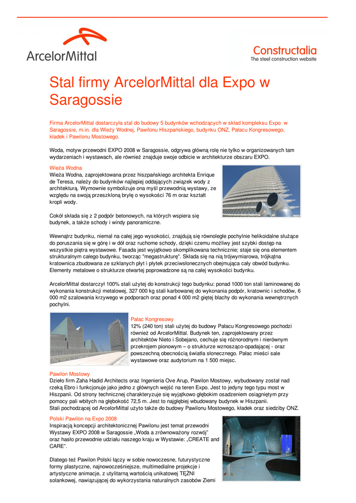 Stal firmy ArcelorMittal dla Expo w Saragossie