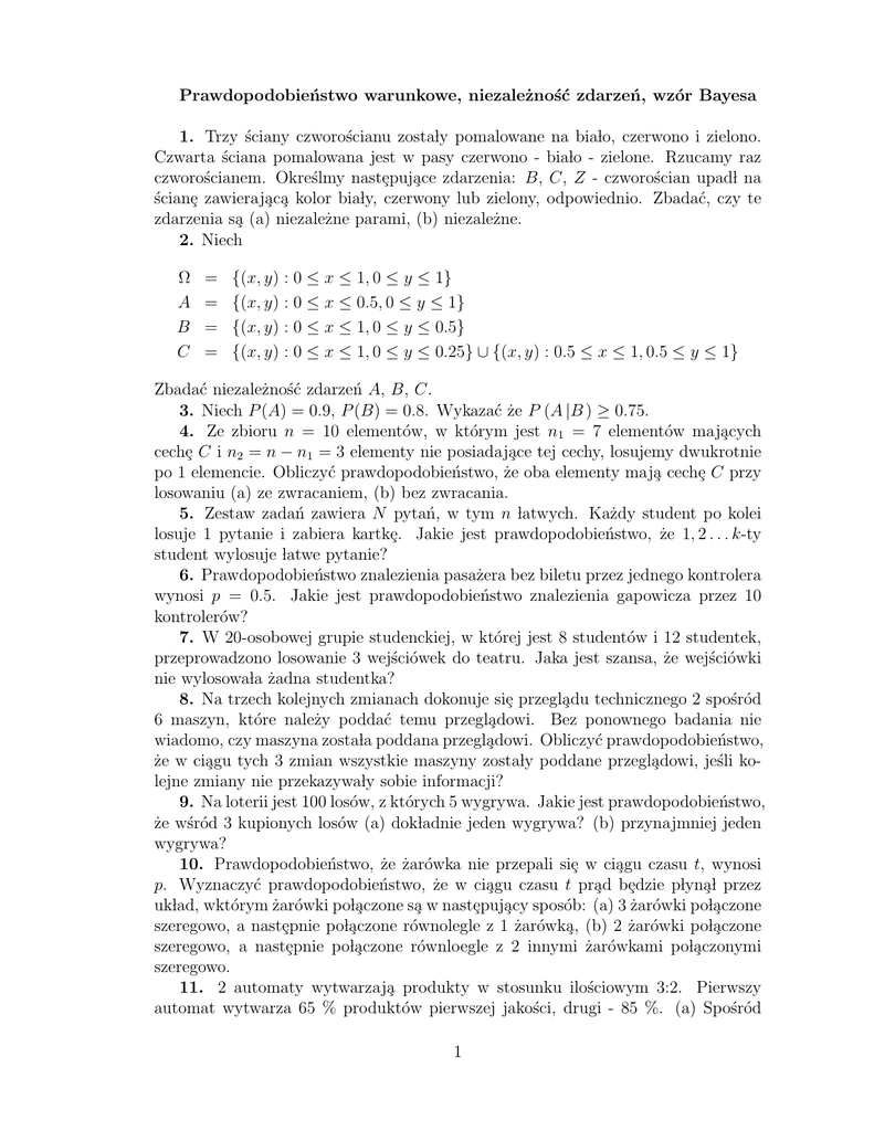 Prawdopodobieństwo warunkowe, niezależność zdarzeń, wzór Bayesa