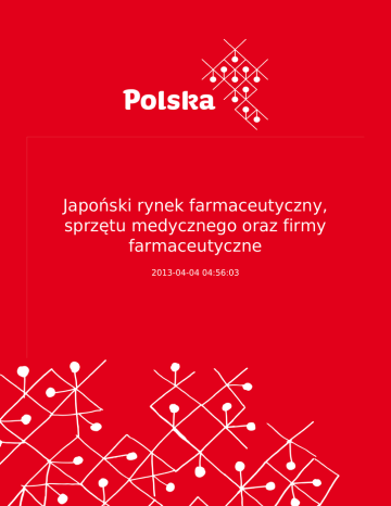 Japoński rynek farmaceutyczny, sprzętu medycznego oraz firmy farmaceutyczne 2013-04-04 04:56:03 2 Japoński przemysł farmaceutyczny ma długą historię. Pierwsze zapiski na temat stosowania leków i metod leczenia w Japonii sięgają okresu Yamato (okres trwający od połowy IV do VII wieku n.e.), w którym kwitła wymiana towarów i ludzi pomiędzy Japonią a resztą kontynentu. Posiadana przez Chiny wiedza na temat sposobów leczenia oraz leków została przekazana mnichom w świątyniach. W tamtych czasach leki i leczenie przeznaczone były niemal wyłącznie dla szlachetnych rodów i najzamożniejszej warstwy społecznej, wywodzącej swoje korzenie z rodziny cesarsk Spis treści 1. Zarys historii japońskiego przemysłu farmaceutycznego 1.1. Narodziny japońskiego przemysłu farmaceutycznego. Cech wytwórców leków okresu Edo oraz oryginalny japoński system sprzedaży detalicznej leków .... 3 1.2. Wpływy zachodnie; studia holenderskie; westernizacja okresu Meiji; pierwsza wojna światowa .... 4 1.3. Postęp powojenny - pojawienie się na rynku firm spoza sektora farmaceutycznego .... 4 1.4. Powszechne ubezpieczenia społeczne .... 4 1.5. Aktualna sytuacja .... 5 2. Charakterystyka japońskiego rynku farmaceutycznego 2.1. Wielkość japońskiego rynku farmaceutycznego .... 5 2.2. Import oraz eksport leków .... 7 2.3. Zarządzanie rynkiem leków na receptę przeznaczonych do celów opieki medycznej w ramach powszechnych ubezpieczeń społecznych .... 7 2.4. System dystrybucji leków .... 8 2.5. Nowe leki oraz leki generyczne .... 8 3 2.6. Kierunek reformy systemu opieki medycznej .... 9 3. Firmy farmaceutyczne w Japonii 3.1. Ogólna sytuacja .... 9 3.2. Cztery największe koncerny farmaceutyczne .... 9 3.3. Restrukturyzacja grupy quasi-dużych oraz średniej wielkości przedsiębiorstw ....11 3.4. Firmy farmaceutyczne z kapitałem zagranicznym .... 11 3.5. Japońskie firmy farmaceutyczne będące spółkami zależnymi zagranicznych koncernów .... 12 4. Perspektywy dla japońskiego rynku farmaceutycznego 4.1. Proces reorganizacji przemysłu farmaceutycznego .... 13 4.2. Japoński rynek dla firm farmaceutycznych z kapitałem zagranicznym .... 14 PEŁNY TEKST W ZAŁĄCZNIKU PONIŻEJ. Dodatkowe informacje można również znaleźć na stronach JETRO pod adresem: http://www.jetro.go.jp/en/invest/attract/medical/ Sprzęt Medyczny Japoński rynek sprzętu medycznego jest wart 23 miliardy Euro i jest, po USA i Unii Europejskiej trzecim co do wielkości rynkiem na świecie. Ponad 50% sprzętu medycznego w Japonii pochodzi z importu, w tym ze Stanów Zjednoczonych około 55,7%, a z krajów UE 27,9% (wg. danych MHLW). Producenci z USA i Europy pomogli zpionieryzować w Japonii nieinwazyjne terapie poprzez wykorzystanie skanów MRI ( magnetic resonance imaging ), skanów CT (computed tomography) i PETs (positron emission tomography). Mimo tego jedynie połowa z oferowanego sprzętu medycznego w USA i Europie jest dostępna w Japonii. Wynika to przede wszystkim z faktu zbyt długiego procesu dopuszczenia do sprzedaży, który w przypadksu Japonii trwa średnio od 12 do 36 miesięcy, podczas gdy w UE trwa to około 6 miesięcy. Dodatkowo sytuację komplikuje fakt, że w tym procesie uczestniczą dwie instytucje i tak kontrola dokumentacji jest wykonywana przez PMDA (Pharmaceuticals and Medial Devices Agency), a wydanie zgody zależy od MHLW ( ministry of Health, Labour and Walfare). Kolejnym problem jest także niewystarczająca liczba inspektorów, których w porównaniu z USA jest prawie dziesięc razy mniej. W wyniku zaistniałej sytuacji Japonia jest opóżniona przynajmniej o jedną generację w porównaniu ze standardami w UE i USA. Strony z dodatkowi informacjami dotyczącymi prawa i przepisów związanych z branżą farmaceutyczną i sprzętu medycznego: MHLW - Pharmaceutical Affairs Law http://www.mhlw.go.jp/ 4 Kanto Shinetsu Regional Bureau of Health and Welfare http://kouseikyoku.mhlw.go.jp/kantoshinetsu/ Kinki Regional Bureau of Health and Welfare http://kouseikyoku.mhlw.go.jp/kinki/index.html Pharmaceuticals and Medical Devices Agency http://www.pmda.go.jp/ Federation of Cosmetic Manufacturers Associations of Japan http://www.jcia.org/ The Medical Devices Development Support Association http://en.mdsa.jp/ - MDSA pomaga producentom sprzętu medycznego we wszelkich formalnościach związanych z rejestracją i wprowadzeniem produktu na rynek japoński. Bath agents / środki do kąpieli. Japan Bath Additives Association http://www.jbia.org/ Consumer Product Safety Association http://www.sg-mark.org/ Japanese Patent Office (trademark rights, design rights) www.jpo.go.jp/indexj.htm METI (Washington convention) http://www.meti.go.jp/policy/external_economy/trade_control/boekikanri/cites/ METI (Household Goods Quality and Labeling Law) www.meti.go.jp/policy/consumer/seian/hinpyo/index.htm 5