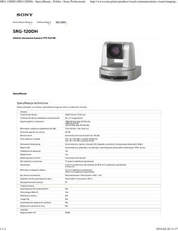 SRG-120DH (SRG120DH) : Specyfikacje : Polska : Sony Professional 1z2 http://www.sony.pl/pro/product/visual-communications-visual-imaging... Kamera Funkcje kamery Interfejs 2016-05-20 11:17 SRG-120DH (SRG120DH) : Specyfikacje : Polska : Sony Professional 2z2 http://www.sony.pl/pro/product/visual-communications-visual-imaging... Ogólne Uwagi 2016-05-20 11:17