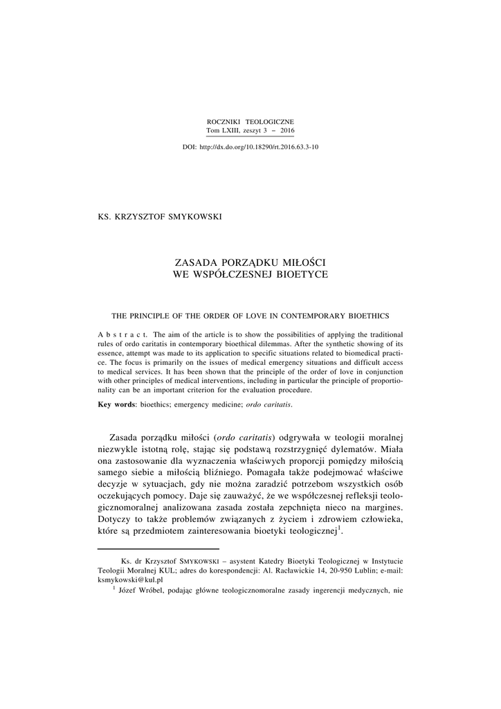 zasada porz ˛adku miłos´ci we współczesnej bioetyce
