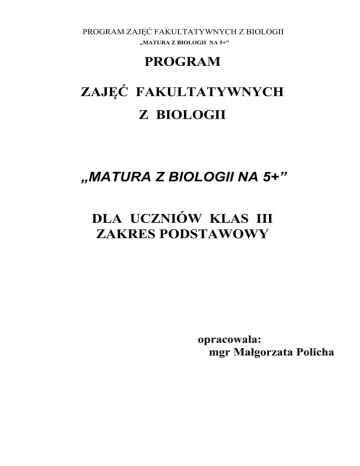 PROGRAM ZAJĘĆ FAKULTATYWNYCH Z BIOLOGII „MATURA Z