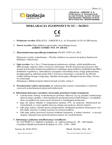 DEKLARACJA ZGODNOŚCI Nr EC – 56/2013 - Izolacja