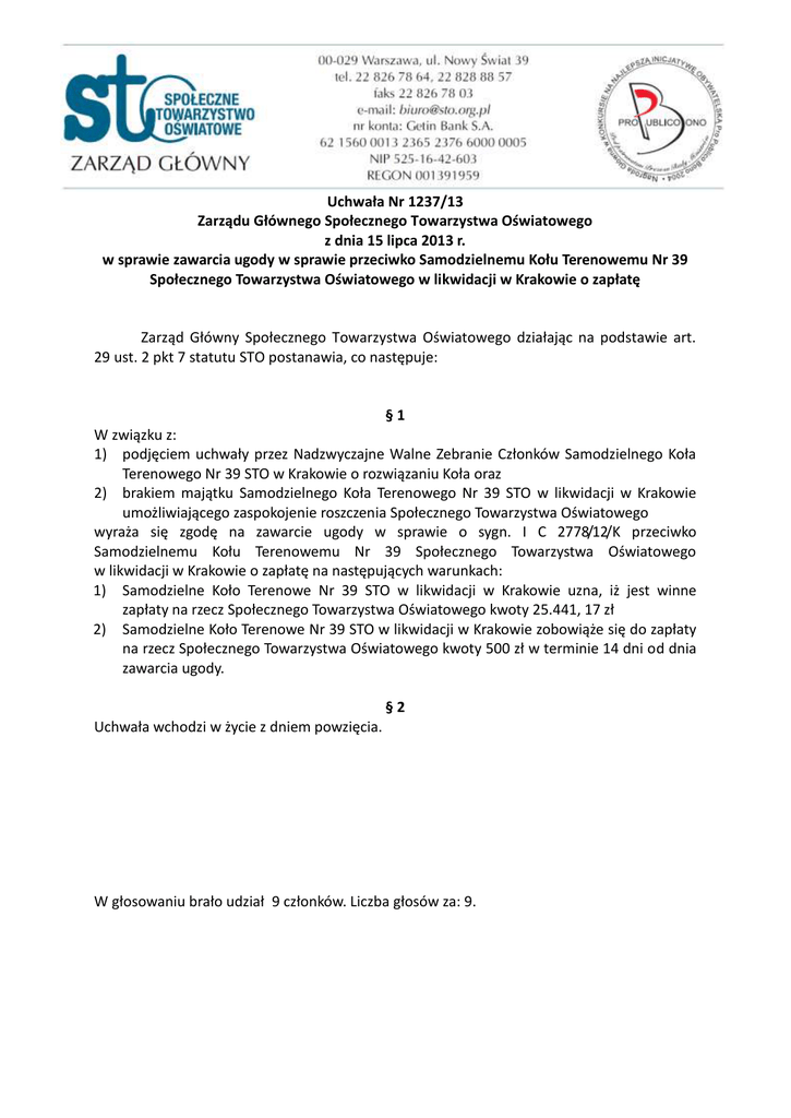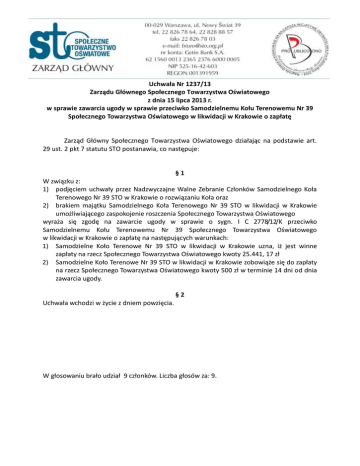 Uchwała Nr 1237/13 Zarządu Głównego Społecznego