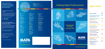 Ekipa techniczna i handlowa jest zawsze gotowa do udzielenia porad klientom. POLSKA MAPA SPONTEX POLSKA Sp z o o ul. Mierzeja Wiślana 9 30-832 Kraków Tel.: (48) 606 836 134 - Faks: (48) 122 900 400 Katalog Mapa Professionnel [email protected] Spis treści > Doradcy techniczno-handlowi w terenie Serwis Handlowy Mapa Professionnel Tel.: (48) 606 836 134 Faks: (48) 122 900 400 AFRYKA / BLISKI WSCHÓD MAPA ABU DHABI UAE Tel.: (971) 50 125 91 77 [email protected] ARGENTYNA VIRULANA S.A.I.C. Centro Industrial Garin Ruta Panamericana km 37 1619 Garin - Pcia de Buenos Aires Tel.: (54) 11 4378 6100 Faks: (54) 11 4378 6133 [email protected] > Serwis Technicznego Wsparcia Klientów służy wszelkimi informacjami technicznymi i prawnymi. AZJA / OCEANIA MAPA PROFESSIONNEL 7/F, Ray Ind.Bldg., 71 Hung To Road Kwun Tong, Kowloon Hong Kong Tel.: (852) 2790 3826 Faks: (852) 2763 7783 Serwis Technicznego Wsparcia Klientów służy pomocą przy doborze najlepszej ochrony w zależności od sektora działalności klienta. Odpowiada w szczególności na pytania klienta dotyczące zagrożeń chemicznych, mechanicznych, termicznych... Może również udzielić porad w sprawach dotyczących organizacji szkoleń. BRAZYLIA MUCAMBO SA Rua do Rocio, 351 Cj 41, Vila Olimpia 04552-000 SAO PAULO S.P. BRAZIL Tel.: (55) 11 2133 30 00 Fax: (55) 11 2133 30 33 [email protected] Serwis Technicznego Wsparcia Klientów: FRANCJA MAPA PROFESSIONNEL Défense Ouest 420, rue d’Estienne d’Orves 92705 Colombes Cedex Tel.: (33) 1 49 64 22 00 Faks: (33) 1 49 64 24 29 [email protected] [email protected] > Nieprzerwany serwis on-line HISZPANIA MAPA SPONTEX ESPANA S.A. C/ Berlín 38-48, 1ª planta 08029 - Barcelona Tel.: (34) 932 924 949 Faks: (34) 932 924 950 [email protected] MEKSYK MAPA SPONTEX MÉXICO Blvd Manuel Avila Camacho No. 37 P-7 Col. Lomas de Chapultepec Del. Miguel Hidalgo CP 11000 México, D.F Tel. (52) 55 9138 1680 Faks: (52).55 5282 3427 [email protected] NIEMCY MAPA GmbH Industriestraße 21-25 27404 Zeven Tel.: (49) 4281 73160 Faks: (49) 4281 73169 [email protected] REPUBLIKA CZESKA & SŁOWACJA MAPA SPONTEX, s.r.o. Podvinny mlyn 2178/6 190 00 Praha 9 Czech Republic Tel.: (420) 283 116 667 Faks: (420) 283 116 688 [email protected] USA MAPA Spontex, Inc. 2834 Schoeneck Road Macungie, PA 18062-9679 Tel.: (1) 800-537-2897 Faks: (1) 800-537-3299 [email protected] www.mapaglove.com Wystarczy wejść na strony internetowe Mapa Professionnel, aby odnaleźć - właściwości wszystkich naszych rękawic, - broszury opisujące produkty, - przydatne dane adresowe… WĘGRY MAPA PROFESSIONNEL SÖKE Hungária Kft. 1. Györi road 9228 Halászi Tel.: (36) 30 419 2600 Fax: (36) 96 573 212 [email protected] WŁOCHY MAPA SPONTEX ITALIA S.P.A. Via San Giovanni Bosco, 24 20010, Pogliano Milanese (MI) Italia Tel.: (39) 02 93474163 Faks: (39) 02 93474172 [email protected] www.mapa-professionnel.com 02 Do użytku jednorazowego 04 Do użytku uniwersalnego Do przedłużonego kontaktu z mało agresywnymi płynami Ochrona chemiczna ZJEDNOCZONE KRÓLESTWO MAPA SPONTEX UK Ltd Berkeley Business Park Wainwright Road Worcester WR4 9ZS - England Tel.: (44) 1905 450 303 Faks: (44) 1905 450 352 [email protected] Dostosowana do każdych potrzeb dzięki szerokiej gamie, podzielonej według polimeru Ochrona podczas czynności manipulacyjnych Rozwiązanie dla każdej pracującej dłoni INNE KRAJE MAPA PROFESSIONNEL Défense Ouest 420, rue d’Estienne d’Orves 92705 Colombes Cedex France Tel.: (33) 1 49 64 22 00 Faks: (33) 1 49 64 24 29 [email protected] Odpowiedź na agresje spotykane podczas ogólnych czynności manipulacyjnych 08 16 36 Prace precyzyjne Ciężkie prace manipulacyjne Ochrona przed przecięciem Rozwiązania dostosowane do wszystkich problemów związanych z cięciem 44 Prace precyzyjne Ciężkie prace manipulacyjne KRY Ochrona termiczna Do pracy w zimnych temperaturach i do kontaktu z czynnikami gorącymi / zimnymi Twój dystrybutor: www.mapa-professionnel.com Informacje ogólne Cienkie rękawice do ochrony rąk i produktów podczas delikatnych czynności - www.dbagraphic.com Zdjęcia: Elisabeth Deschamps DPL060 - 06/11 Nasi doradcy są do dyspozycji klientów, aby przeanalizować z nimi wymogi i zagrożenia specyficzne dla każdego stanowiska pracy. Dzięki swojej wiedzy technicznej, pomogą oni w doborze najodpowiedniejszych rękawic pod kątem komfortu i bezpieczeństwa. Wspierają oni również klientów podczas organizacji szkoleń i uwrażliwiania współpracowników. Ochrona przed czynnikami biologicznymi powierz mapie swoje dłonie Zapewnia aktywną ochronę przed ryzykiem zakażenia wirusowego Środowisko krytyczne Rękawice przeznaczone do pracy w pomieszczeniach czystych i w miejscach chronionych Środowisko kontrolowane Środowisko chronione www.mapa-professionnel.com 54 60 62 Katalog Mapa Professionnel Więcej niż katalog Wybierz rękawice ochronne w 4 etapach: Etap 1 Określ swoje potrzeby odnośnie ochrony rąk za pomocą spisu znajdującego się z tyłu niniejszej zakładki. pomoc w doborze rękawic. Odkryj nowe produkty oferowane wyłącznie przez Mapa Professionnel Mapa Professionnel wprowadza innowacje, aby jeszcze lepiej chronić Twoje dłonie: odkryj rękawice opracowane przez nasze ośrodki badawczo-rozwojowe, aby udoskonalić warunki pracy Twoich współpracowników. Temp-Cook 476 Etap 2 Rozpoznaj za pomocą tabeli, do jakiej grupy należą rękawice, które najlepiej odpowiadają na Twoje potrzeby (ochrona, komfort, środowisko). (str.59) „Ochrona termiczna” Preferowana przez użytkowników i nagrodzona wieloma nagrodami, rękawica Temp-Cook 476 to innowacyjne rozwiązanie dla zawodowców w przemyśle spożywczym. Rękawica długa 45 cm gwarantująca pełną ochronę przedramienia, w pełni szczelna z odpornością termiczna do 250°C. Innowacyjna technologia MAPA „Ochrona chemiczna” Etap 3 Upewnij się, że wybrana grupa rękawic jest dostosowana do Twojego zawodu i że jej główne atuty odpowiadają Tw