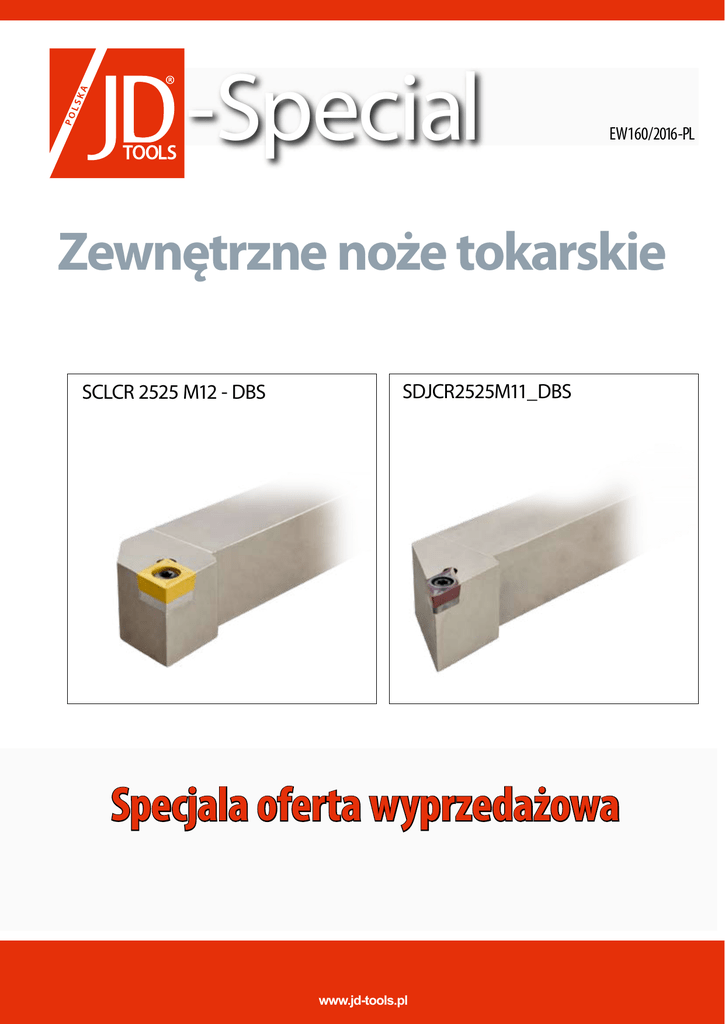 -Special EW160/2016-PL Zewnętrzne noże tokarskie SCLCR 2525 M12 - DBS Varicut SDJCR2525M11_DBS Specjala oferta wyprzedażowa www.jd-tools.pl Zamówienie (Fax: +48 - 95 758 36 24) Special EW 160/2016-PL Pieczątka firmowa : Firma : Osoba kontaktowa : Adres : Telefon : Fax : E-Mail : Prosimy podać ilość płytek i wysłać zwrotnie faxem lub e-mailem ! SCLCR Ilość SDJCR 95° Oznaczenie Wymiary [mm] H B L1 L2 Płytka 93° PLN/ Sztuk f SCLCR 2020 K09 - DBS 20 20 125 25 25 CC •• 09T3 •• SCLCR 2525 M12 - DBS 25 25 15 0 25 32 CC •• 1204 •• SDJCR 2525 M11 - DBS 25 25 150 25 32 DC •• 11T3 •• Oferta ważna do 28.02.2016 lub do wyczerpania zapasów. Do podanych cen należy doliczyć podatek VAT oraz koszty przesyłki. Zmiany techniczne zastrzeżone. Nie ponosimy odpowiedzialności za błędy w druku. Obowiązują nasze ogólne warunki handlowe. JD - Tools Polska Sp. z o. o. ul. Prosta 1 66-470 Kostrzyn nad Odrą, Polska Tel.: +48-95 758 36 20 Fax.: +48-95 758 36 24 E-Mail: [email protected] l ls.p oo d-t w.j ww KW 03-2016/LK