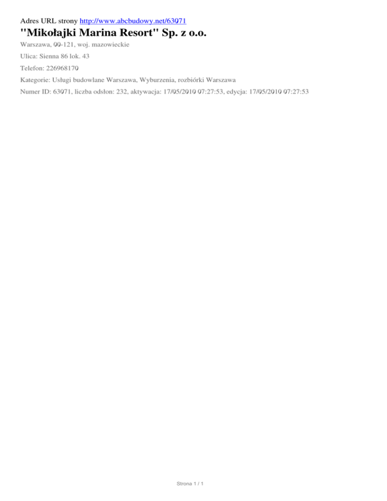 "Mikolajki Marina Resort" Sp. z oo, Warszawa