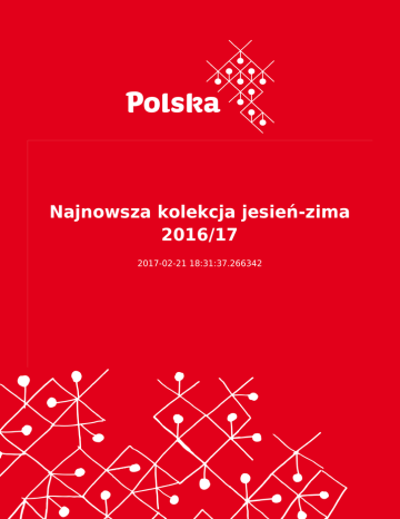 Najnowsza kolekcja jesień-zima 2016/17 2017-02-21 18:31:37.266342 2 This offer does not constitute trade information Adres instytucji/firmy ogłaszającej ofertę OSKAR baby 95-060 Brzeziny, Traugutta 10 , Poland Contact person Anna Reszczyńska [email protected] Phone: 503119189 www.oskarbaby.pl Description of the contract Purchasers from abroad ● ● ● Słowacja Rosja Czechy CPV ● Clothing, footwear, luggage articles and accessories 3 Attachments 2101 body koszula roz., 56-98.JPG Offer type Sell Time limit for receipt of offers 31.10.2016 Valid from 01.06.2016 Industries Tekstylia Odzież i obuwie Pozostałe tekstylia Odzież, tekstylia, wyroby skórzane The minimum value of the contract 500.00 Currency PLN 4 Purchasers from abroad YES 5