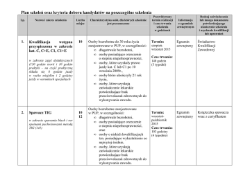 Plan szkoleń oraz kryteria doboru kandydatów na