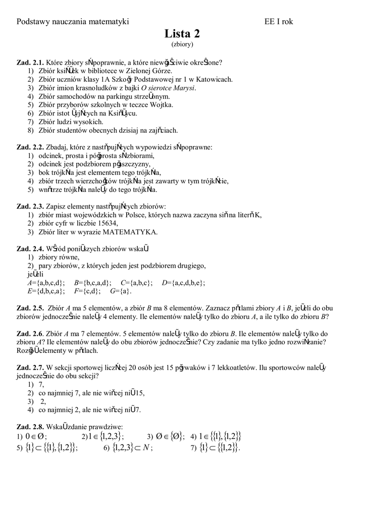 Zad. 2.4. Wśród poniższych zbiorów wskaż: