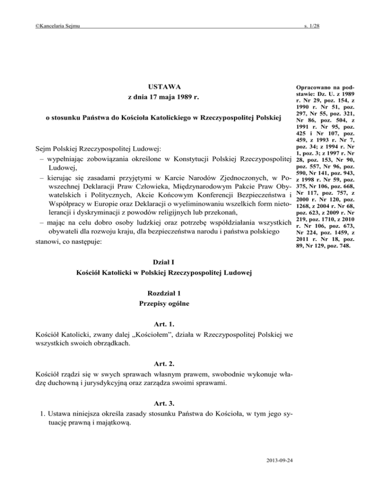 USTAWA z dnia 17 maja 1989 r. o stosunku Państwa do Kościoła