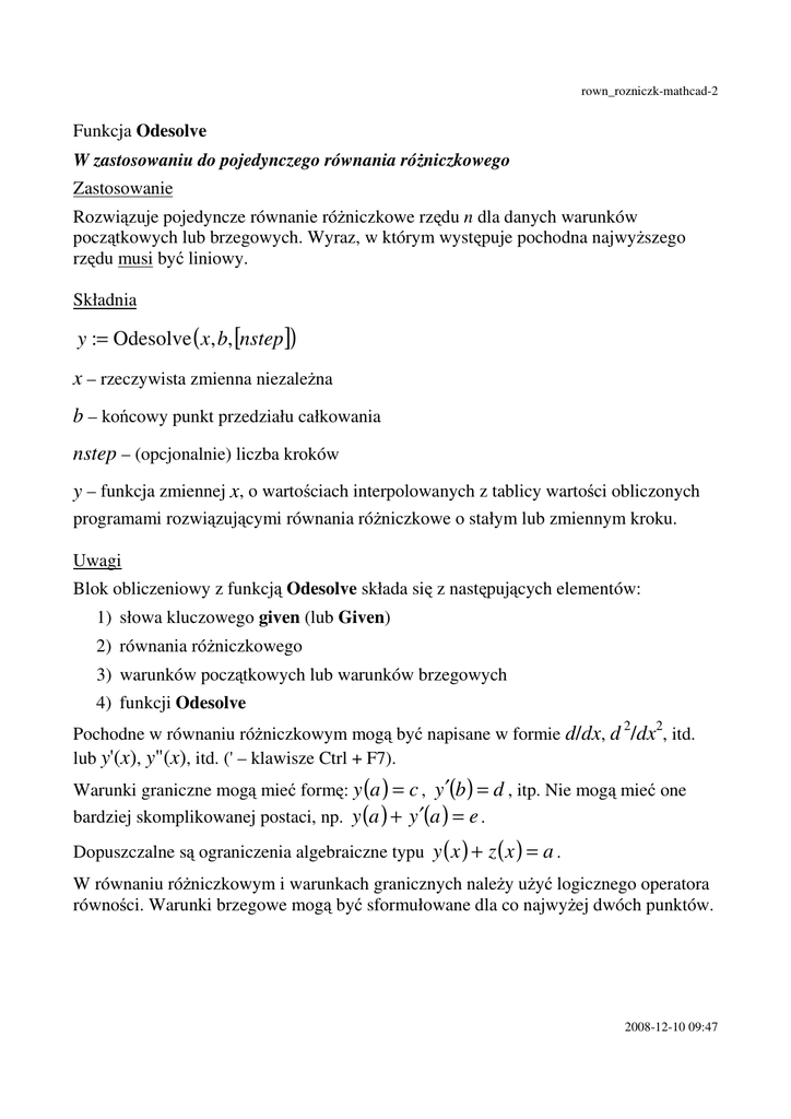 początkowych lub brzegowych. Wyraz, w którym występuje pochodna najwyższego
