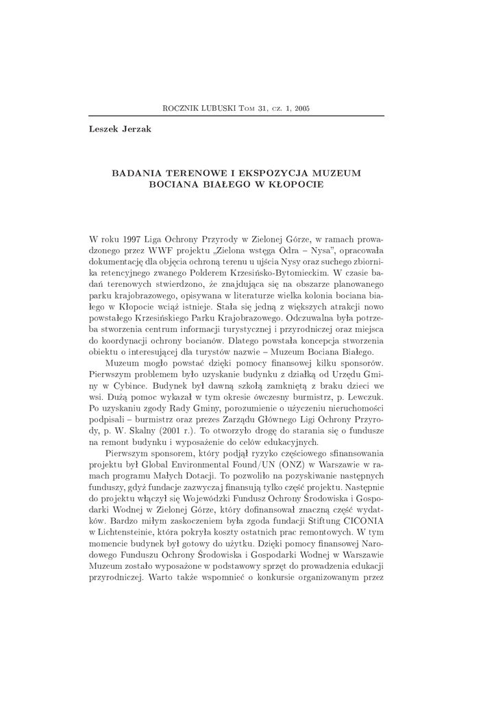 Leszek Jerzak BADANIA TERENOWE I EKSPOZYCJA MUZEUM