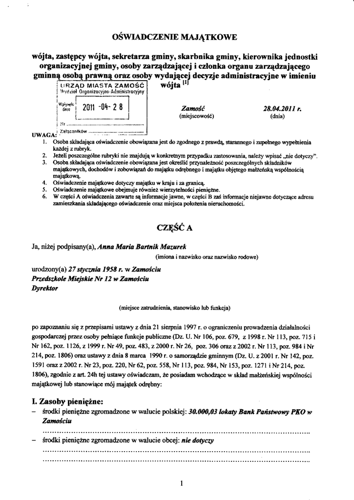 Oświadczenie majątkowe kierowników przedszkoli nr 12-15