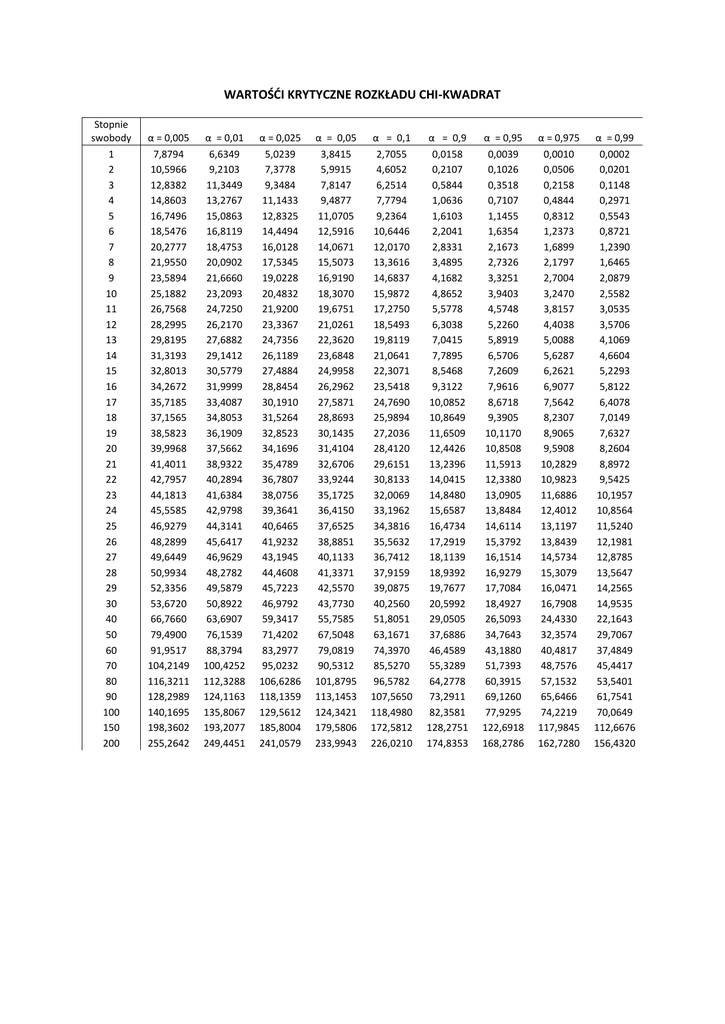 WARTOŚĆI KRYTYCZNE ROZKŁADU CHI