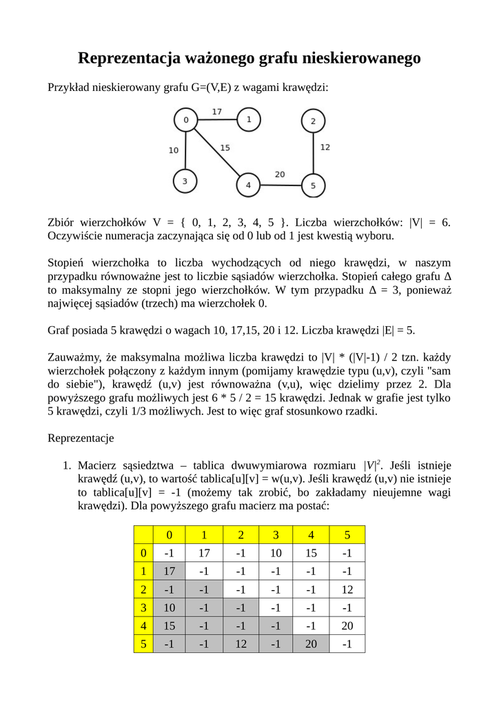 sąsiada, jak i wagę krawędzi łączącej go z i-tym wierzchołkiem. Zawartość