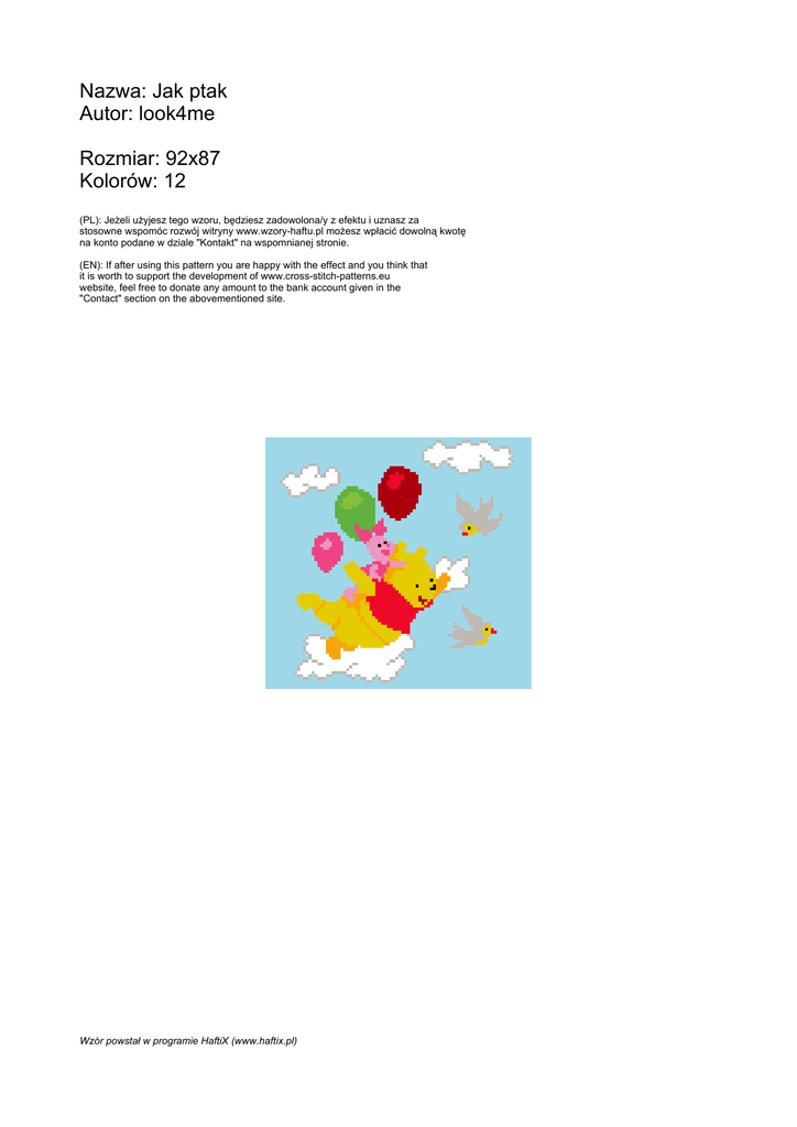 Nazwa: Jak ptak Autor: look4me Rozmiar: 92x87 Kolorów: 12 (PL): JeŜeli uŜyjesz tego wzoru, będziesz zadowolona/y z efektu i uznasz za stosowne wspomóc rozwój witryny www.wzory-haftu.pl moŜesz wpłacić dowolną kwotę na konto podane w dziale "Kontakt" na wspomnianej stronie. (EN): If after using this pattern you are happy with the effect and you think that it is worth to support the development of www.cross-stitch-patterns.eu website, feel free to donate any amount to the bank account given in the "Contact" section on the abovementioned site. Wzór powstał w programie HaftiX (www.haftix.pl) 10 -Ariadn...owa) 1819 -Ariadn...owa) 1819 -Ariadn...owa) 1819 -Ariadn...owa) 1651 1819 -Ariadn...owa) 1819 -Ariadn...owa) 1819 -Ariadn...owa) 1819 -Ariadn...owa) 1819 -Ariadn...owa) 1819 20 -Ariadn...owa) 1819 -Ariadn...owa) 1819 -Ariadn...owa) 1819 -Ariadn...owa) 1819 -Ariadn...owa) 1819 -Ariadn...owa) 1819 -Ariadn...owa) 1819 -Ariadn...owa) 1819 -Ariadn...owa) 1819 -Ariadn...owa) 1819 30 -Ariadn...owa) 1819 -Ariadn...owa) 1819 -Ariadn...owa) 1819 -Ariadn...owa) 1819 -Ariadn...owa) 1819 -Ariadn...owa) 1819 -Ariadn...owa) 1819 -Ariadn...owa) 1819 -Ariadn...owa) 1819 -Ariadn...owa) 1819 40 -Ariadn...owa) 1819 -Ariadn...owa) 1819 -Ariadn...owa) 1819 -Ariadn...owa) 1819 -Ariadn...owa) 1819 -Ariadn...owa) 1819 -Ariadn...owa) 1819 -Ariadn...owa) 1819 -Ariadn...owa) 1819 -Ariadn...owa) 1819 50 -Ariadn...owa) 1819 -Ariadn...owa) 1819 -Ariadn...owa) 1819 -Ariadn...owa) 1819 -Ariadn...owa) 1819 -Ariadn...owa) 1819 -Ariadn...owa) 1819 -Ariadn...owa) 1819 -Ariadn...owa) 1819 -Ariadn...owa) 1819 60 -Ariadn...owa) 1819 -Ariadn...owa) 1819 -Ariadn...owa) 1819 -Ariadn...owa) 1819 -Ariadn...owa) 1819 -Ariadn...owa) 1819 -Ariadn...owa) 1819 -Ariadn...owa) 1819 -Ariadn...owa) 1819 -Ariadn...owa) 1819 70 -Ariadn...owa) 1819 -Ariadn...owa) 1819 -Ariadn...owa) 1819 -Ariadn...owa) 1819 -Ariadn...owa) 1819 -Ariadn...owa) 1819 -Ariadn...owa) 1819 -Ariadn...owa) 1819 80 Jak ptak 10 10 20 20 30 30 40 40 50 50 10 20 30 40 50 60 70 80 Strona nr 1 10 -Ariadn...owa) 1819 20 -Ariadn...owa) 1819 -Ariadn...owa) 1819 -Ariadn...owa) 1819 -Ariadn...owa) 1819 -Ariadn...owa) 1819 -Ariadn...owa) 1819 -Ariadn...owa) 1819 -Ariadn...owa) 1819 -Ariadn...owa) 1819 -Ariadn...owa) 1819 30 -Ariadn...owa) 1819 -Ariadn...owa) 1819 -Ariadn...owa) 1819 -Ariadn...owa) 1819 -Ariadn...owa) 1819 40 -Ariadn...owa) 1819 -Ariadn...owa) 1819 -Ariadn...owa) 1819 -Ariadn...owa) 1819 -Ariadn...owa) 1819 50 -Ariadn...owa) 1819 -Ariadn...owa) 1819 -Ariadn...owa) 1819 -Ariadn...owa) 1819 -Ariadn...owa) 1819 -Ariadn...owa) 1819 -Ariadn...owa) 1819 -Ariadn...owa) 1819 -Ariadn...owa) 1819 -Ariadn...owa) 1819 60 -Ariadn...owa) 1819 -Ariadn...owa) 1819 -Ariadn...owa) 1819 -Ariadn...owa) 1819 -Ariadn...owa) 1819 -Ariadn...owa) 1819 -Ariadn...owa) 1819 -Ariadn...owa) 1819 -Ariadn...owa) 1819 -Ariadn...owa) 1819 70 -Ariadn...owa) 1819 -Ariadn...owa) 1819 -Ariadn...owa) 1819 -Ariadn...owa) 1819 80 60 60 Jak ptak 70 70 80 80 90 90 10 20 30 40 50 60 70 80 Strona nr 2 Symbol Nr nici KrzyŜyki Motki 2 nitki Motki 3 nitki Motki 6 nitek Ariadna (nowa) 1500 694 1 1 2 Ariadna (nowa) 1505 620 1 1 2 Ariadna (nowa) 1514 157 1 1 1 Ariadna (nowa) 1552 230 1 1 1 Ariadna (nowa) 1555 193 1 1 1 Ariadna (nowa) 1567 175 1 1 1 Ariadna (nowa) 1602 114 1 1 1 Ariadna (nowa) 1651 5165 4 5 10 Ariadna (nowa) 1698 30 1 1 1 Ariadna (nowa) 1699 160 1 1 1 Ariadna (nowa) 1810 457 1 1 1 Ariadna (nowa) 1819 9 1 1 2 Jak ptak