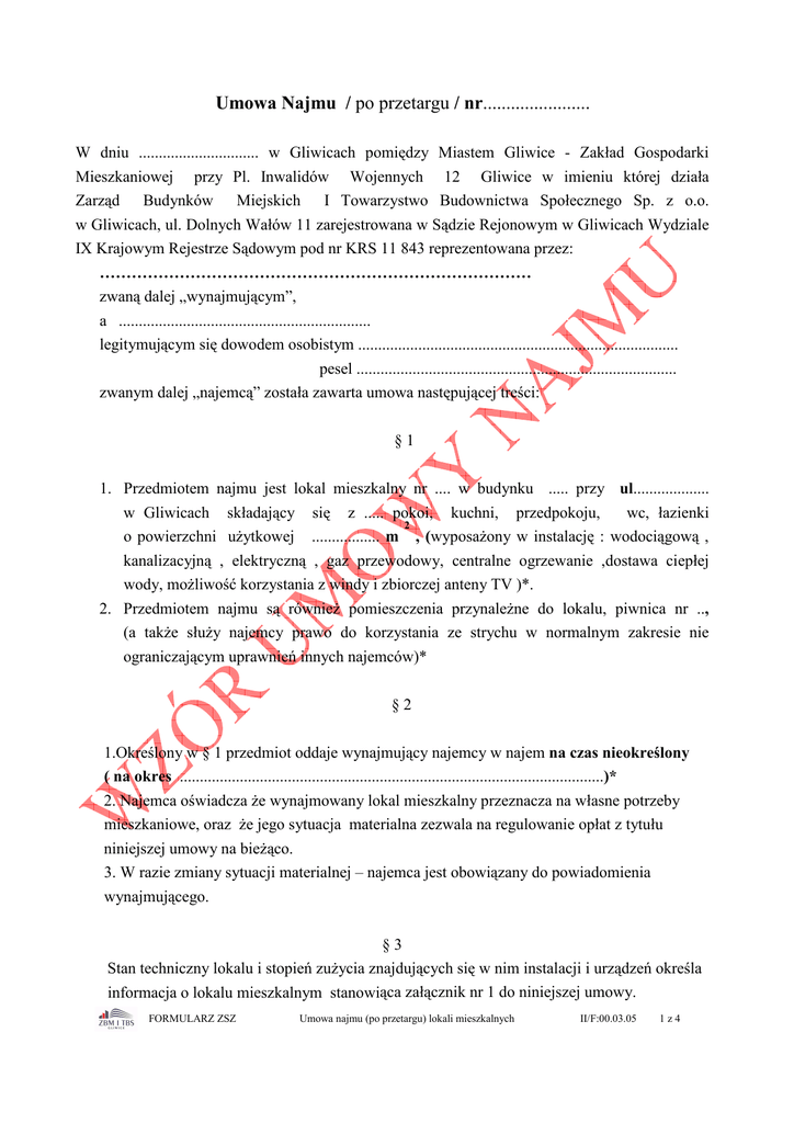 Wzór umowy najmu na lokal mieszkalny po przetargu Pobierz