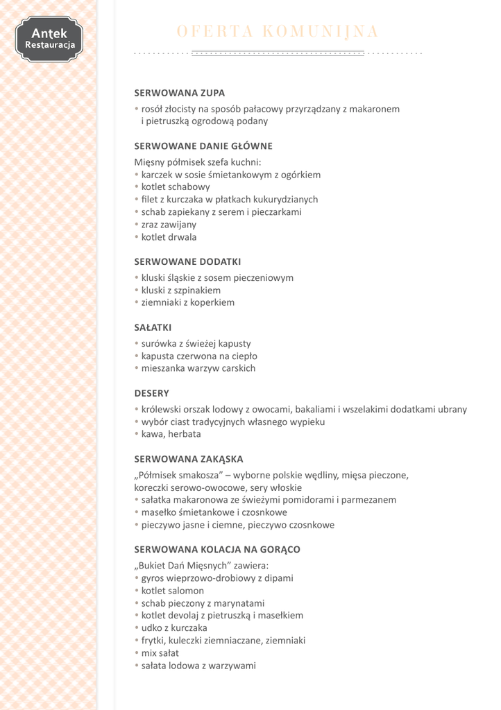 oferta komunijna - Restauracja Antek