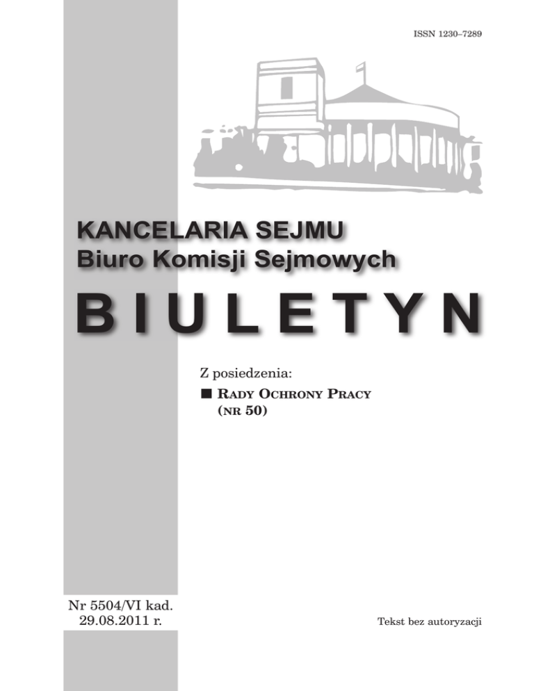 Posiedzenie w dniu 29 sierpnia 2011 r. - Rada Ochrony Pracy
