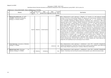 Załącznik A do SIWZ Znak sprawy: 2 / WOMP – ZCLiP / 2013 Specyfikacja Istotnych Warunków Zamówienia na Kompleksowe ubezpieczenie mienia i odpowiedzialności cywilnej WOMP – ZCLiP na okres 2 lat WOMP-ZCLiP WYKAZ BUDYNKÓW WRAZ Z OPISEM stan na 31.01.2013r. Pow Cena 1 m2 Suma Suma wartość Lp. Budynek całkowita wz ubezpieczenia WO ubezpieczenia KB ubezp. w m2 Opis budynku budynki 1 Budynek Przychodni część „A” i „B” + „Łącznik” w Szczecinie, ul. Bolesława Śmiałego 33. ST02024, ST02025 3626,97 3 000,00 zł 2 3 1/5 10 880 910,00 zł Garaż murowany w Szczecinie, ul. Bolesława Śmiałego 33. ST00046 Budynek stacja trafo w Szczecinie, Bolesława Śmiałego 33. ST00048 WO 4 043,82 zł KB ul. 30 3 000,00 zł 90 000,00 zł WO Klasa ubezpieczeniowa ryzyka ogniowego: I. Budynki A, B i łącznik są ze sobą połączone ścianami bocznymi. Od strony ul. Krzywoustego budynek „B” połączony jest ściana boczną z kamienicą kwartału ulic Krzywoustego, Bolesława Śmiałego, Chodkiewicza.. Budynki część „A” i „B” wybudowano w roku 1979 z materiałów trudnopalnych. Budynki połączone są łącznikiem, który wybudowano w 2004 roku. Odporność ogniowa klasy C spełniona. Budynki wybudowano o konstrukcji ścian nośnych murowanych, stropy żelbetowe, słupy i podciągi żelbetowe, dach na budynku część „A” i „B” plaski z płyt żelbetowych pokryty papą, Budynek część „łącznik” pokryty jest dachem o konstrukcji stalowej – blacha trapezowa. W części pomieszczeń w budynku część „A” i „B” dokonano przebudowę. Całość przeznaczona jest do świadczenia usług medycznych. Wytrzymałość stropów jest dostosowana do zainstalowanych urządzeń i aparatury medycznej. Budynki wyposażone są w instalacje: elektryczną, wodno-kanalizacyjną, grzewczą CO zasilaną z sieci miejskiej z węzłem cieplnym umieszczonym w piwnicy budynku część „A”, wentylację grawitacyjną oraz część pomieszczeń wyposażona jest w wentylację mechaniczną nawiewno-wywiewną z czerpnią powietrza na zewnątrz i wyprowadzonym wywiewem ponad dach budynku, odgromową i antywłamaniową, do budynku części „A” doprowadzona jest instalacja gazowa. Budynek część „A” wyposażony jest w dźwig szpitalny. Budynek część „Łącznik” wyposażony jest w dźwig osobowy przystosowany dla osób niepełnosprawnych. Oddymienie klatki schodowej wykonano poprzez montaż systemu automatycznego otwierania klapy dymowej. Na zewnątrz budynku przy wejściu głównym jest podjazd dla osób niepełnosprawnych i poruszających się na wózkach. Klasa ubezpieczeniowa ryzyka ogniowego: I, wybudowano w roku 1979 z materiałów trudnopalnych, budynek pięciosegmentowy o konstrukcji ścian murowanych, przekryty dachem płaskim z płyt żelbetowych pokrycie papą. Budynek wyposażony jest w instalacje: elektryczną, kanalizacyjną. Klasa ubezpieczeniowa ryzyka ogniowego: I, wybudowano w roku 1979 z materiałów trudnopalnych, budynek o konstrukcji ścian murowanych, przekryty dachem płaskim z płyt żelbetowych pokrycie papą. Załącznik A do SIWZ Znak sprawy: 2 / WOMP – ZCLiP / 2013 Specyfikacja Istotnych Warunków Zamówienia na Kompleksowe ubezpieczenie mienia i odpowiedzialności cywilnej WOMP – ZCLiP na okres 2 lat Lp. 4 Budynek Pow Cena 1 m2 Suma Suma wartość całkowita wz ubezpieczenia WO ubezpieczenia KB ubezp. w m2 Budynek Przychodni w którym mieszczą się Przychodnia Rehabilitacji Leczniczej i Zawodowej, Zakłady Ortopedyczne i Oddział Dzienny Rehabilitacji. w Szczecinie, ul. Mikołaja Kopernika 18. ST00157 2246,07 3 000,00 zł 5 6 Budynek wielofunkcyjny położony na terenie Zakładów Ortopedycznych w Szczecinie, ul. Mikołaja Kopernika 18 w którym mieszczą się Warsztaty Zakładów Ortopedycznych, Sklep wyposażenia Ortopedyczno – Rehabilitacyjnego. ST00158 160,15 3 000,00 zł 6 738 210,00 zł WO 480 450,00 zł WO Budynek magazynowy położony na terenie Zakładów Ortopedycznych w Szczecinie, ul. Mikołaja Kopernika 18, ST00159 46 458,00 zł 2/5 KB Opis budynku Klasa ubezpieczeniowa ryzyka ogniowego: I. Budynek wolno stojący. Odporność ogniowa klasy C spełniona. Budynek przychodni wolnostojący, zrealizowany w XIX w., przebudowany w latach osiemdziesiątych XX w., zmodernizowany w 2001 r., 4-ro kondygnacyjny, w całości podpiwniczony, o konstrukcji ścian z cegły, całość budynku przeznaczona do świadczeń usług medycznych. W latach osiemdziesiątych, dobudowano dwa szyby windowe, osobowy i towarowy z klatką schodową. Ściany – układ konstrukcyjny mieszany, osłonowe z cegły pełnej na zaprawie cementowo wapiennej. Stropy – piwnic łukowe na belkach, stalowych, kondygnacje stropy Klaina w części dobudowanej stropy WPS. Dach – kryty papą, Klatki schodowe – dwie, jedna schody - ceramiczne na belkach stalowych, oraz druga żelbetowa w części dobudowanej. Budynek wyposażony jest w instalację wod-kan., elektryczną, telefoniczną, logiczną, wentylację grawitacyjną wspomaganą mechanicznie, centralnego ogrzewania zasilaną z sieci miejskiej (węzeł co w piwnicy), wentylację mechaniczną, odgromową i antywłamaniową. Od strony podwórza znajduje się podjazd dla pacjentów niepełnosprawnych poruszających się na wózkach. W części pomieszczeń w budynku dokonano przebudowę. Całość przeznaczona jest do świadczenia usług medycznych. Wytrzymałość stropów jest dostosowana do zainstalowanych urządzeń i aparatury medycznej. Budynek wyposażony jest w dźwig towarowy i w dźwig osobowy przystosowany dla osób niepełnosprawnych. Oddymienie klatki schodowej wykonano poprzez montaż systemu automatycznego otwierania klapy dymowej. Konstrukcja dachu i stropów – stropodach wentylowany, konstrukcja płyty żelbetowo - korytkowej, pokrycie papą na wylewce betonowej; stropy WPS – izolacja keramzytem, (tynki, WPS, keramzyt, szlichta betonowa i posadzka). Klasa ubezpieczeniowa ryzyka ognio