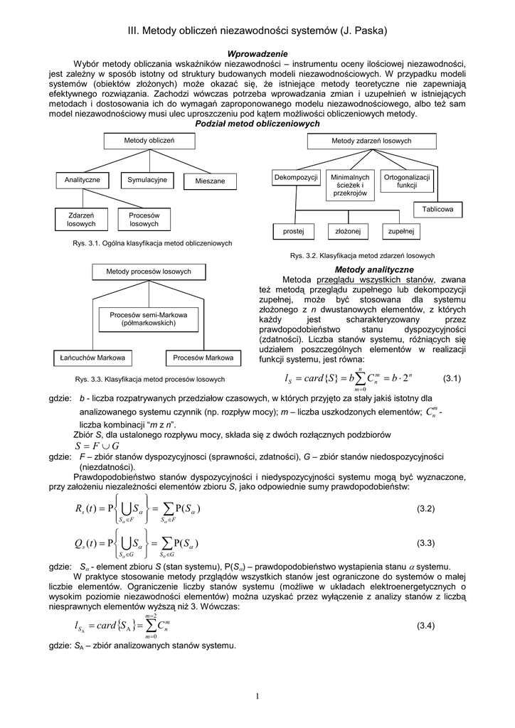 III. Metody obliczeń niezawodności systemów (J. Paska)