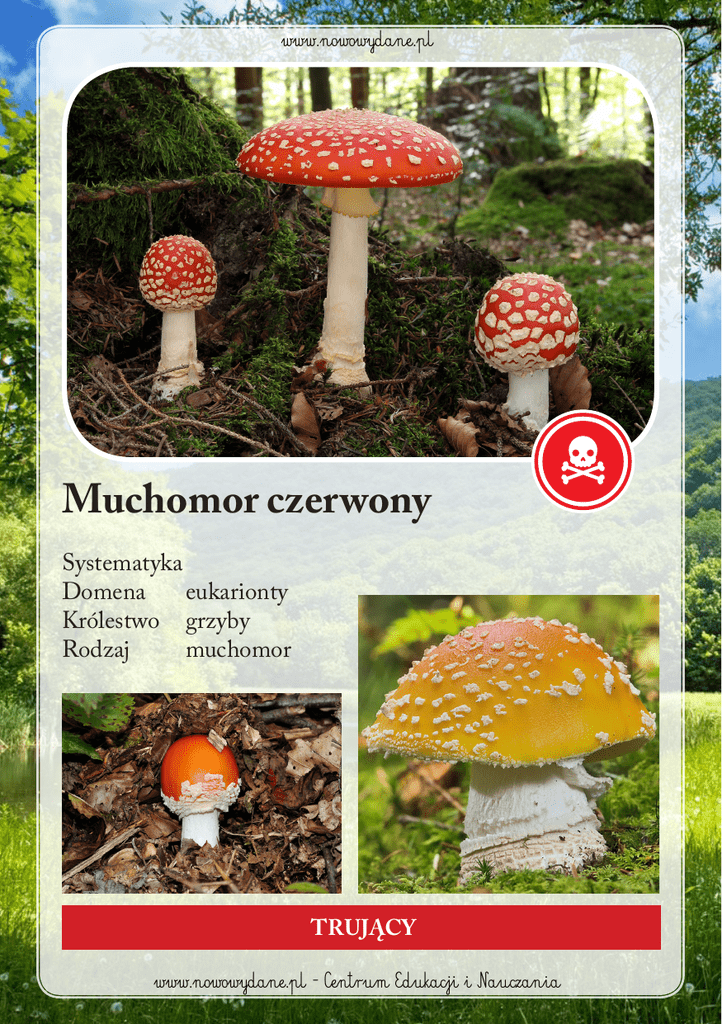 www.nowowydane.pl Muchomor czerwony Systematyka Domenaeukarionty Królestwogrzyby Rodzajmuchomor TRUJĄCY www.nowowydane.pl - Centrum Edukacji i Nauczania