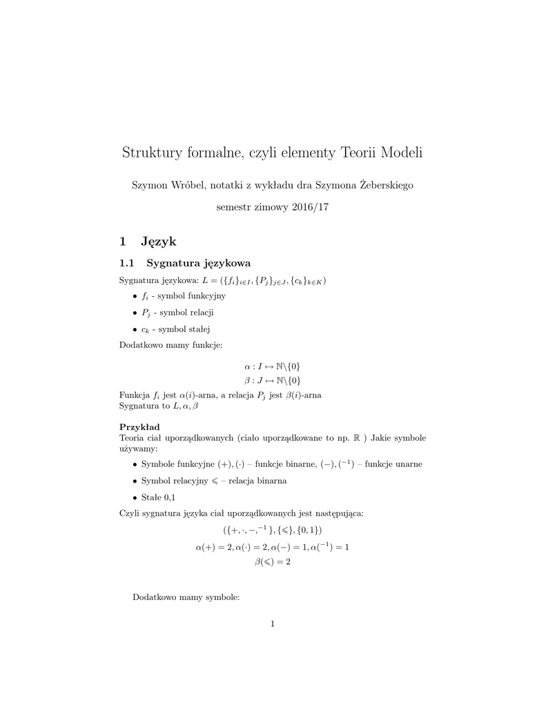 Sygnatura językowa: L = ({fi }i∈I , {Pj }j∈J , {ck }k∈K )