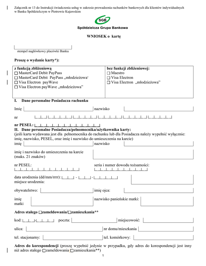 Wniosek o kartę dla klientów indywidualnych