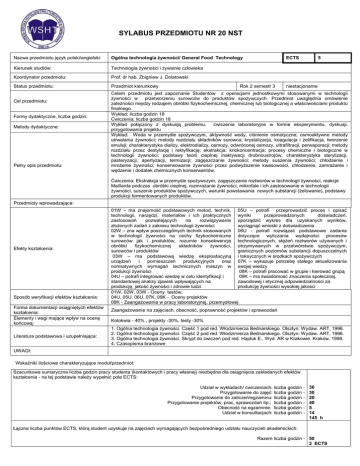Katalog Przedmiotów (Pakiet Informacyjny ECTS)