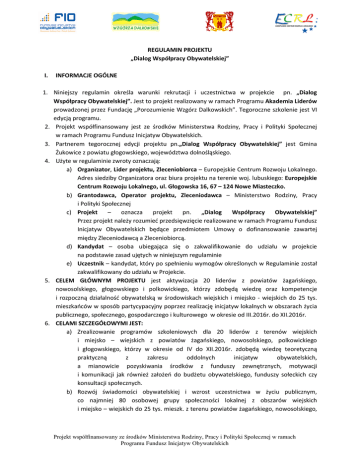 REGULAMIN PROJEKTU „Dialog Współpracy Obywatelskiej” I
