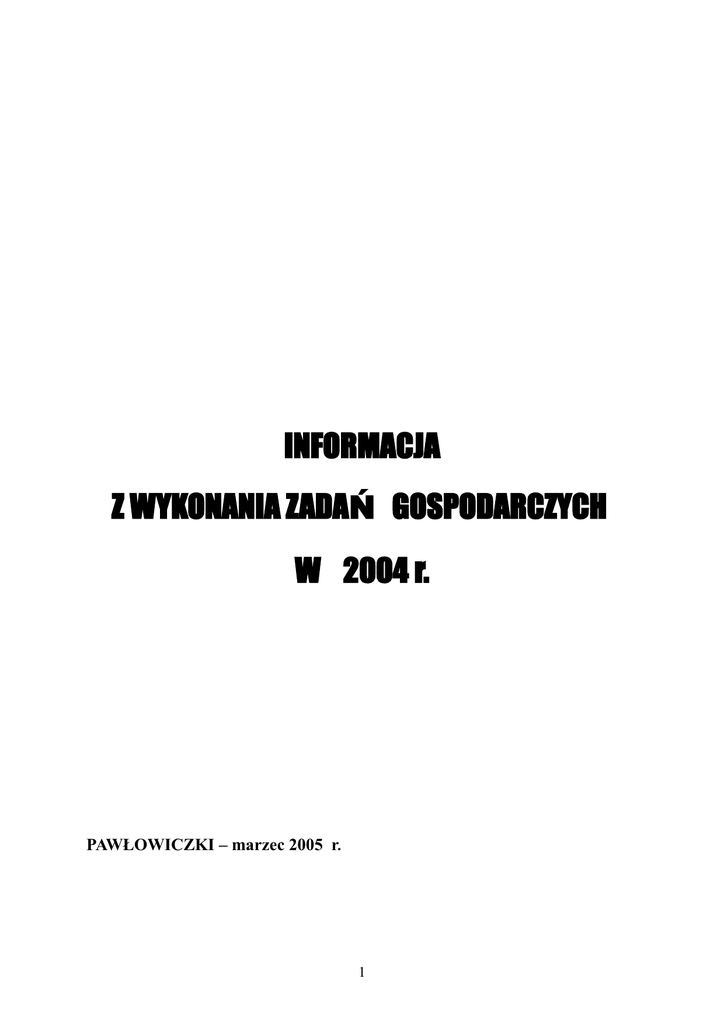 INFORMACJA Z WYKONANIA ZADAŃ GOSPODARCZYCH W 2004 r. PAWŁOWICZKI – marzec 2005 r. 1 PANIE PRZEWODNICZĄCY SZANOWNI RADNI Nawiązując do sprawozdania z wykonania budżetu gminy za 2004 r. omówię i przedstawię realizację zadań gospodarczych w poszczególnych działach gospodarki gminy. I .INWESTYCJE Budowa kanalizacji sanitarnej ciśnieniowo – grawitacyjnej dla wsi Jakubowice i częściowo Grudyni Wielkiej wraz z przyłączami. Wykonawca robót Zakład Produkcyjno-Usługowy „ELTOR” Głubczyce. Wartość zadania 312,3 tyś. zł.. Zakres rzeczowy: - kanalizacja grawitacyjna PCV Ø160-200 L=1001mb - przykanaliki PCV Ø160 L=324 mb / 20 szt. - przepompownie przydomowe ścieków Ø 1000 – 2 szt. - rurociąg tłoczny PE Ø 40-50 L=73 mb Zadania zakończono 27.09.2004 r. , a przekazano do eksploatacji 08.10.2004 r. Zadanie współfinansowane przy udziale pożyczki z WFOŚiGW w Opolu w kwocie 160 tyś. zł. 2. Budowa kanalizacji sanitarnej dla wsi Chrósty wraz z przyłączami. Wykonawca robót Przedsiębiorstwo Usługowo-Handlowe „M+” z Kędzierzyna – Koźla Wartość zadania 1.254,2 zł. Zakres rzeczowy zadania: - przepompownia tranzytowa wraz z infrastrukturą (ogrodzenie,droga) szt.1 - rurociąg ciśnieniowy PE Ø 140 L=2125 mb - kanalizacja grawitacyjna PCV Ø 200 L=1294 mb - przyłącza i przykanaliki kanalizacyjne 11420 mb / 45 szt. w tym 13 szt. przepompowni przydomowych Zadanie zakończono 30-11-2004r. , a przekazano do eksploatacji 10.12.2004 r. Zadanie było współfinansowane w ramach Kontraktu Wojewódzkiego na 2004r. w kwocie 490 tyś.zł. 2 oraz przy udziale pożyczki z WFOŚIGW w Opolu w kwocie 450 tyś. zł. 3. Wykonano dokumentację techniczną na budowę kanalizacji sanitarnej dla wsi Grudynia Wielka, którą wykonywało „Biuro Projektów Wodociągów i Kanalizacji „Neustein” s.c. z Opola. Koszt wykonania ; 19. 520 zł. W związku ze złożeniem projektu do ZPORR Urzędu Marszałkowskiego w Opolu wykonano dodatkowo „Studium wykonalności” dla tego projektu za kwotę : 5. 000 zł. Uzyskano dofinansowanie z funduszy europejskich w ramach Zintegrowanego Programu Operacyjnego Rozwoju Regionalnego ( ZPORR) w kwocie 872 786,64 zł. Zadanie będzie realizowane w 2005 r. 4. Zakupiono pompy ściekowe do przepompowni ścieków przy oczyszczalni ścieków Biogradex” w Pawłowiczkach. Dostawcą 3 szt. pomp typu „Meprozet” była firma AKOSPOL z Opola, która wykonała również częściową modernizację przepompowni polegającą na wymianie rur stalowych na stal nierdzewną oraz regulację sterowania pracy pomp) Koszt robót : 20. 000 zł. Wymiana pomp ściekowych w bardzo dużym stopniu usprawniła pracę przepompowni, a w przyszłości będzie miała również wpływ na zmniejszenie zużycia energii elektrycznej. 5.Wykonano modernizację drogi dojazdowej do gruntów rolnych Urbanowice – Trawniki. Wykonawcą robót był PRDiM w Głubczycach. Wartość zadania 811 275,55 zł. Zakres rzeczowy zadania obejmował : - wykonanie nawierzchni tłuczniowej na odcinku ok. 3,3 km - wykonanie nawierzchni asfaltowej na odcinku 150 mb - budowę przepustów drogowych Ø 400 i Ø 600 – 266 mb - budowę rowów drogowych – 3715 mb Przekazano do eksploatacji 18.10,2004 r. Zadanie finansowane ze środków WFOGR w Opolu w kwocie : 616. 124,95 zł. 3 6. W celu wykonania dokumentacji technicznej na modernizację drogi dojazdowej do gruntów rolnych w Kózkach Dz.Nr 153. Wykonano mapy do celów projektowych na modernizację drogi Dojazdowej jak wyżej na kwotę : 3. 210 zł. WYDATKI BIEŻĄCE 1. Melioracje wodne – utrzymanie i konserwacja rowów Wykonano konserwację rowów we wsiach: - Maciowakrze R-S-7 – 650 mb na kwotę - Radoszowy R-S-1 – 500 mb na kwotę - Grodzisko R-B-40 – 250 mb na kwotę - Trawniki R-G- 6 - 111 mb na kwotę 3. 401zł. 4 140 zł. 1 635 zł. 617,27 zł. 2. Drogi publiczne gminne Wykonano remonty i naprawy przepustów, studzienek kanalizacji burzowej w miejscowościach : - Maciowakrze ul. Mickiewicza - Maciowakrze ul. bez nazwy (Osełkiewicz) - Ucieszków ul. Kozielska - Gościęcin ul. Szkolna na łączna kwotę 3.100,00 zł. - Radoszowy ul.Polna ( łapacz wody) 3.086,31 zł - Pawłowiczki ul.Leśna ( łapacz wody) 2.755,98 zł. Wykaszanie poboczy przy drogach gminnych Koszt robót na kwotę Odśnieżanie dróg i ulic gminnych w okresie zimowym na kwotę w sołectwach Uzupełniono znaki drogowe na ulicach gminnych w sołectwach - Dobrosławice - 2 szt - Borzysławice - 2 szt. - Ucieszków - 6 szt. - Milice - 2 szt. - Jakubowice - 1 szt. - Gościęcin - 3 szt. - Kózki - 2 szt. - Grodzisko - 1 szt. 4 12,000 zł. 20.161 zł. - Urbanowic - Ostrożnica - Maciowakrze - Radoszowy - Grudynia Wielka - Ligota Wielka - Pawłowiczki - Chrósty - Trawniki - 7 szt. - 1 szt. - 3 szt. - 3 szt. - 1 szt. - 1 szt. - 6 szt. - 2 szt. - 1 szt. WARTOŚĆ: 6.000 zł. Wykonano oznakowanie ulic w sołectwach - Chrósty - 6 szt. - Radoszowy - 9 szt. - Dobrosławice - 7 szt. - Grudynia Wielka - 11 szt. - Milice - 10 szt. - Jakubowice - 5 szt. - Trawniki - 8 szt. - Karchów - 2 szt. - Urbanowice - 1 szt. - Ostrożnica - 2 szt. - Borzysławice - 8 szt. - Dobieszów - 3 szt. - Kózki - 5 szt. - Grodzisko - 3 szt. Łącznie ustawiono 80 szt. tablic informacyjnych z nazwami ulic na łączną kwotę 11.999 zł. Przeprowadzono remonty cząstkowe nawierzchni ulic i dróg w Maciowakrzu, Ostrożnicy,droga Ostrożnica - Przedborowice na łączną wartość 20.000 zł. Wyremontowano drogi i ulice gminne w następujących miejscowościach : - Ucieszków ul. Kozielska na kwotę 14.980 zł. - Trawniki ul. Polna na kwotę 20.424,26 zł. - Naczęsławice ul. Główna Dz. Nr. 1000 na kwotę 1 5.818,52 zł. - Ucieszków ul.Krótka i Szkolna,oraz budowa parkingu na kwotę 17.046,05 zł 5 - Gościęcin – Milice wycinka krzewów- plantowanie na kwotę - Maciowakrze ul. Spółdzielcza krawężniki na kwotę - Ostrożnica ul. Przedborowska krawężniki na kwotę - Zakupiono program do