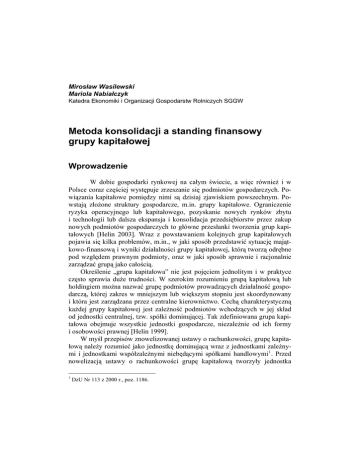Metoda konsolidacji a standing finansowy grupy kapitałowej